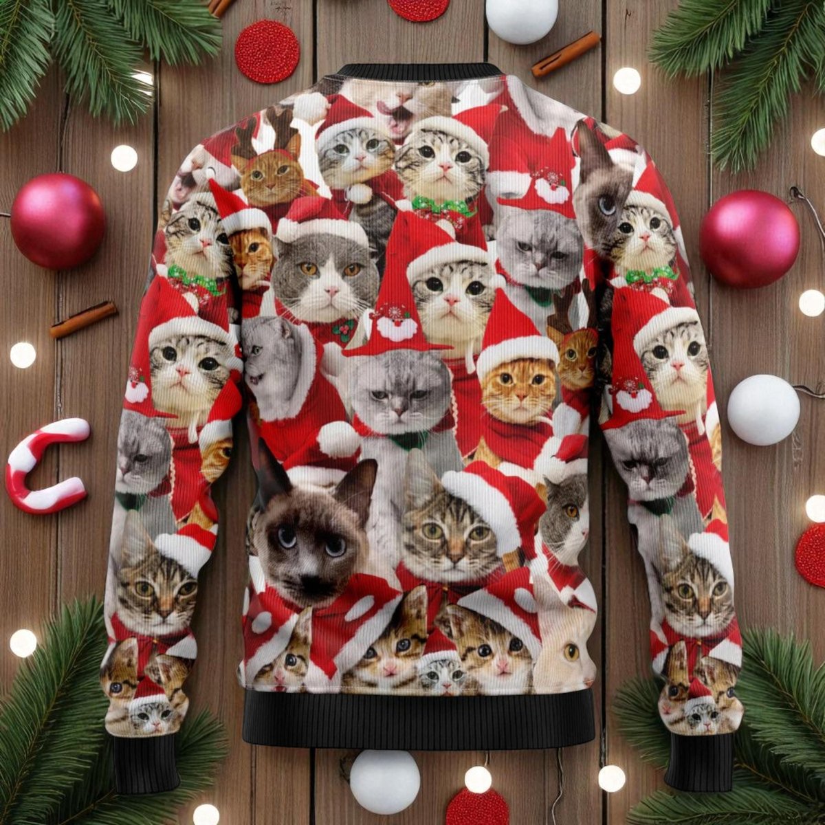 Cute Cat Faces Ugly Christmas Sweater Funny Kitty Santa Holiday Pullover