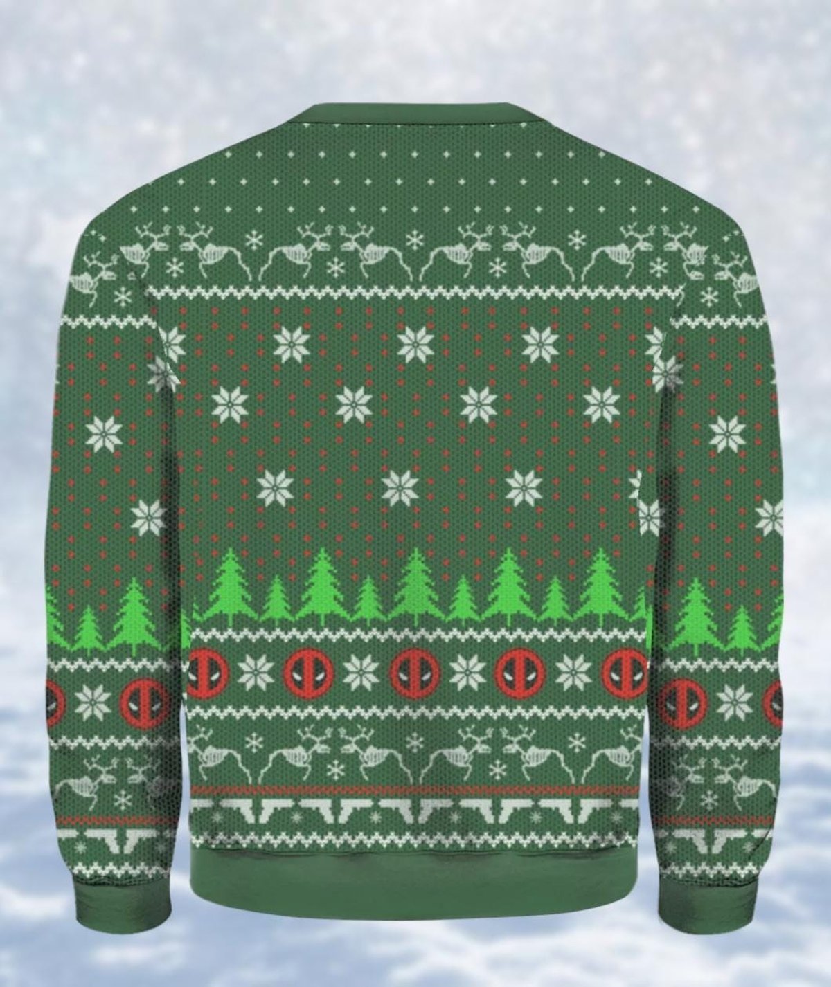 Deadpool Christmas Ugly Sweater Green Funny Marvel Hero Holiday Knit Jumper