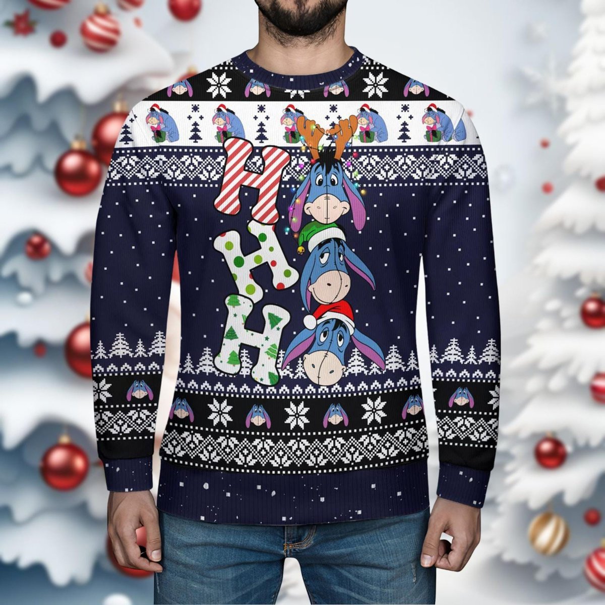 Eeyore Blue Christmas Ugly Sweater Cute Donkey Ho Ho Ho Holiday Knit Jumper