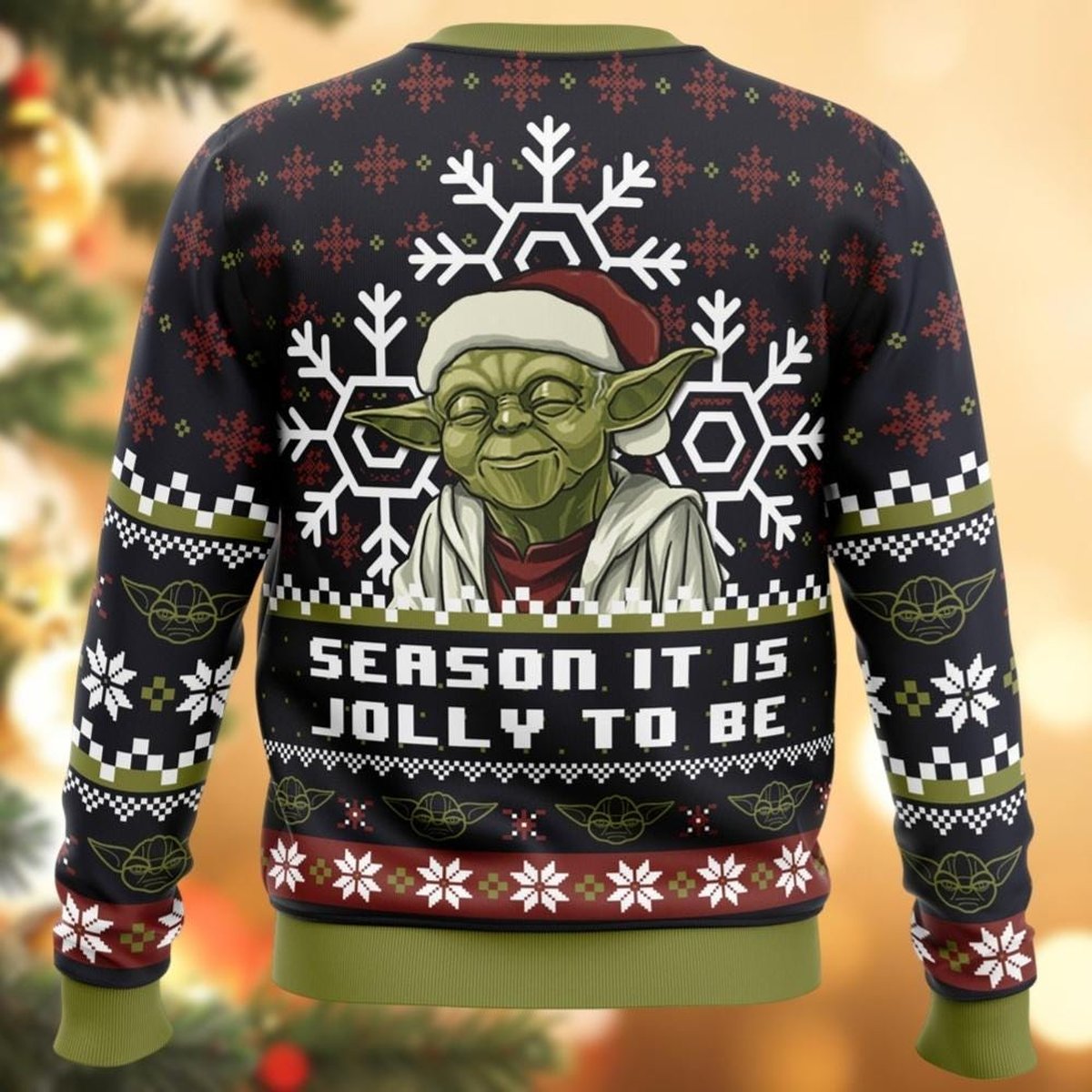Santa Yoda Black Ugly Christmas Sweater Funny Jedi Holiday Knit Jumper