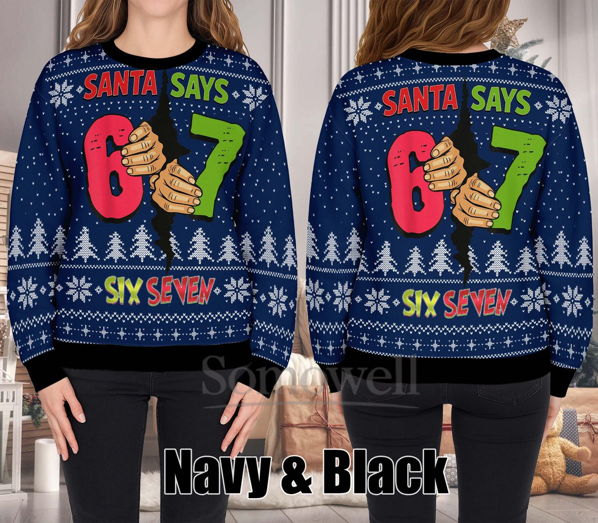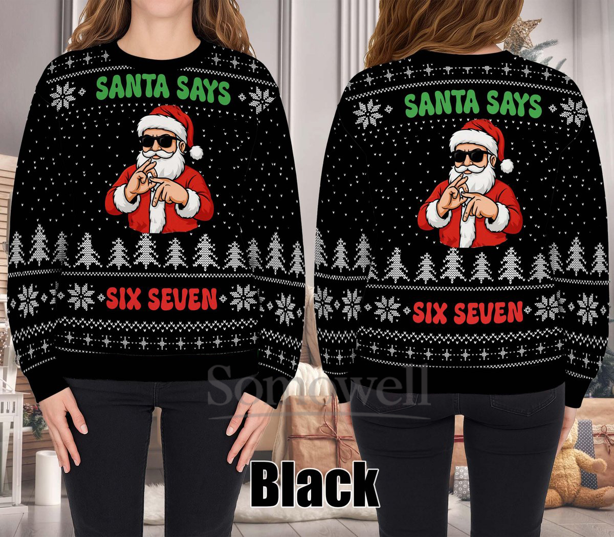Santa Says Six Seven Ugly Christmas Sweater Funny Forest Holiday Knit Jumper Gift