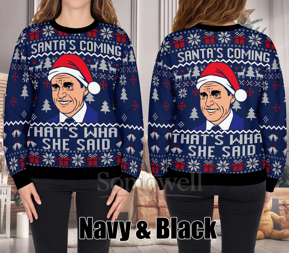 Santas Coming Thats What She Said Ugly Christmas Sweater Holiday Knit Gift