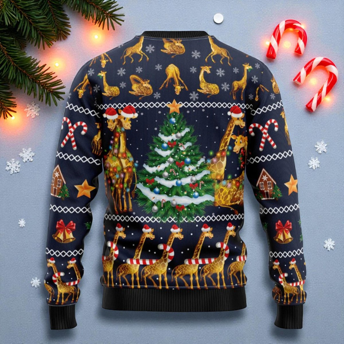 Giraffe Christmas Tree Ugly Sweater Funny Animal Holiday Knit Pullover Gift