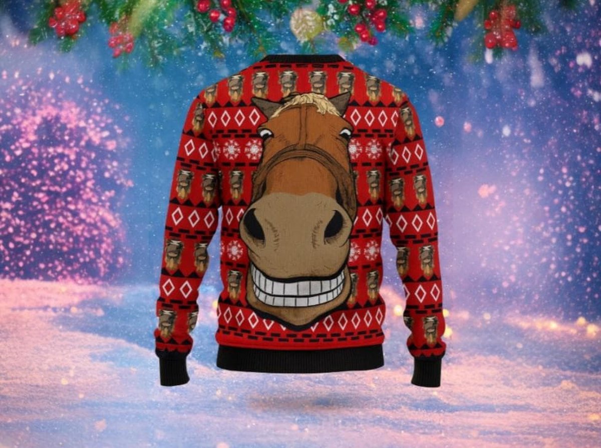 Funny Horse Face Red Ugly Christmas Sweater Hilarious Animal Holiday Knit Jumper