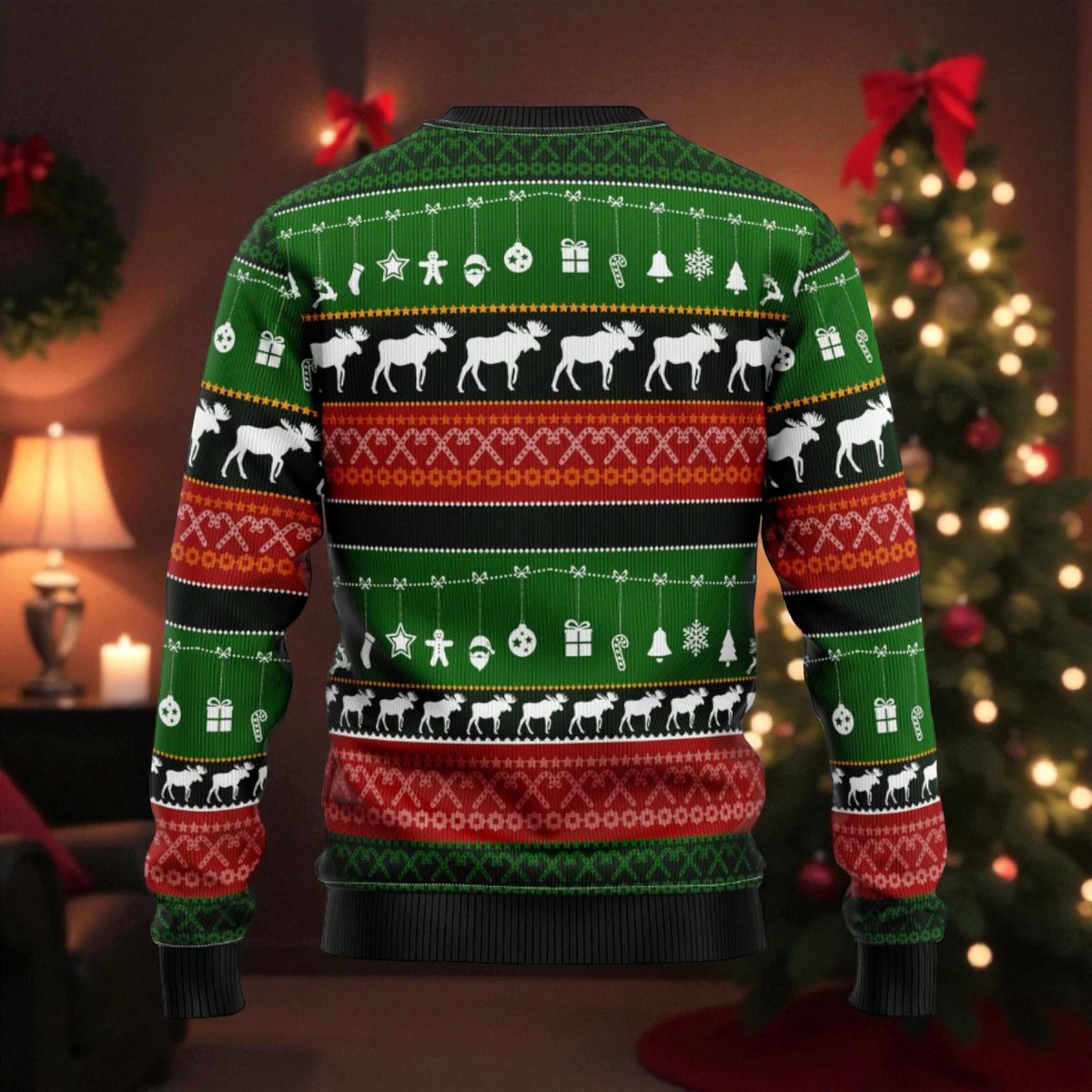 Funny Moose Green Ugly Christmas Sweater Merry Christmoose Holiday Knit Jumper