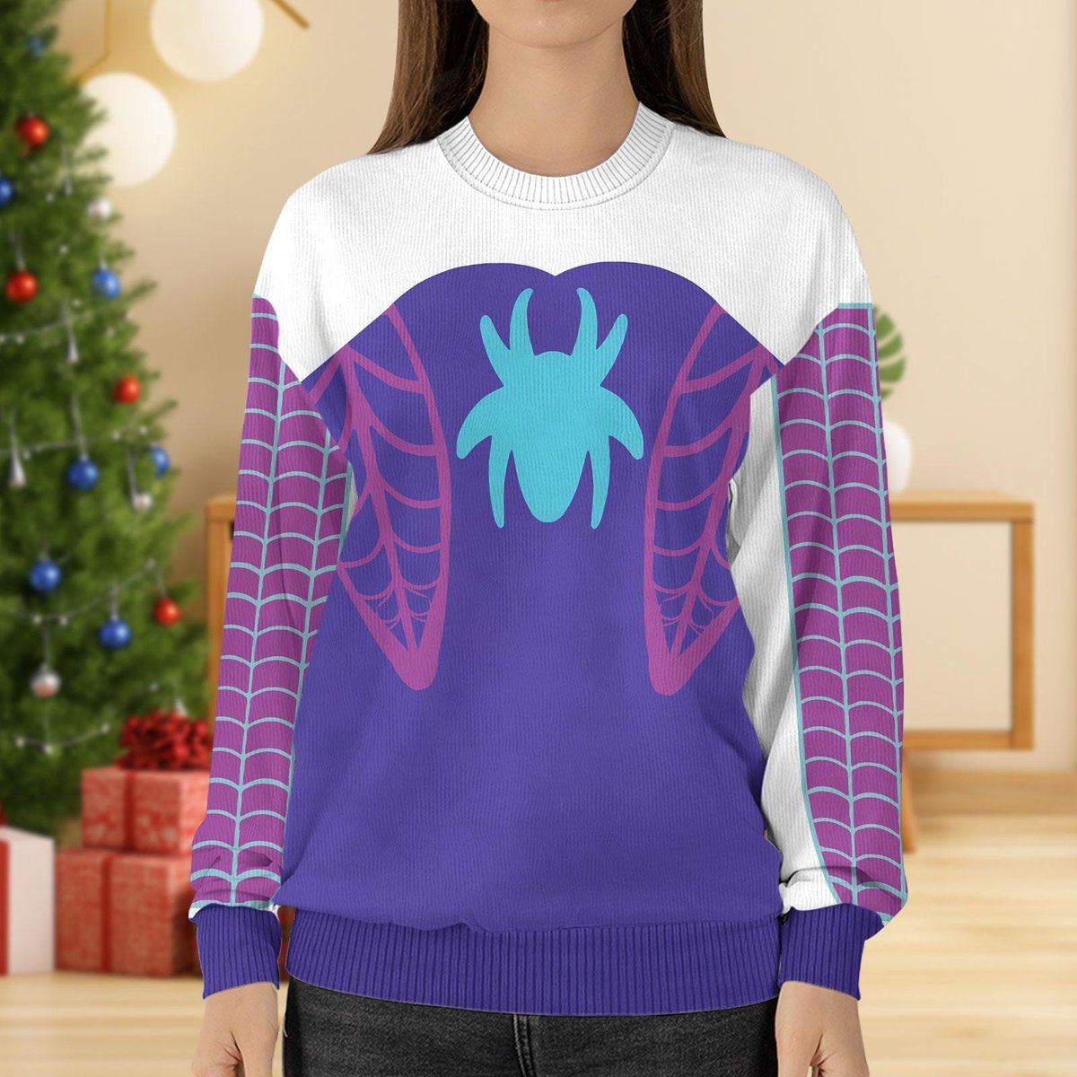 Spider Gwen Purple White Christmas Sweater Hero Style Holiday Knit Pullover