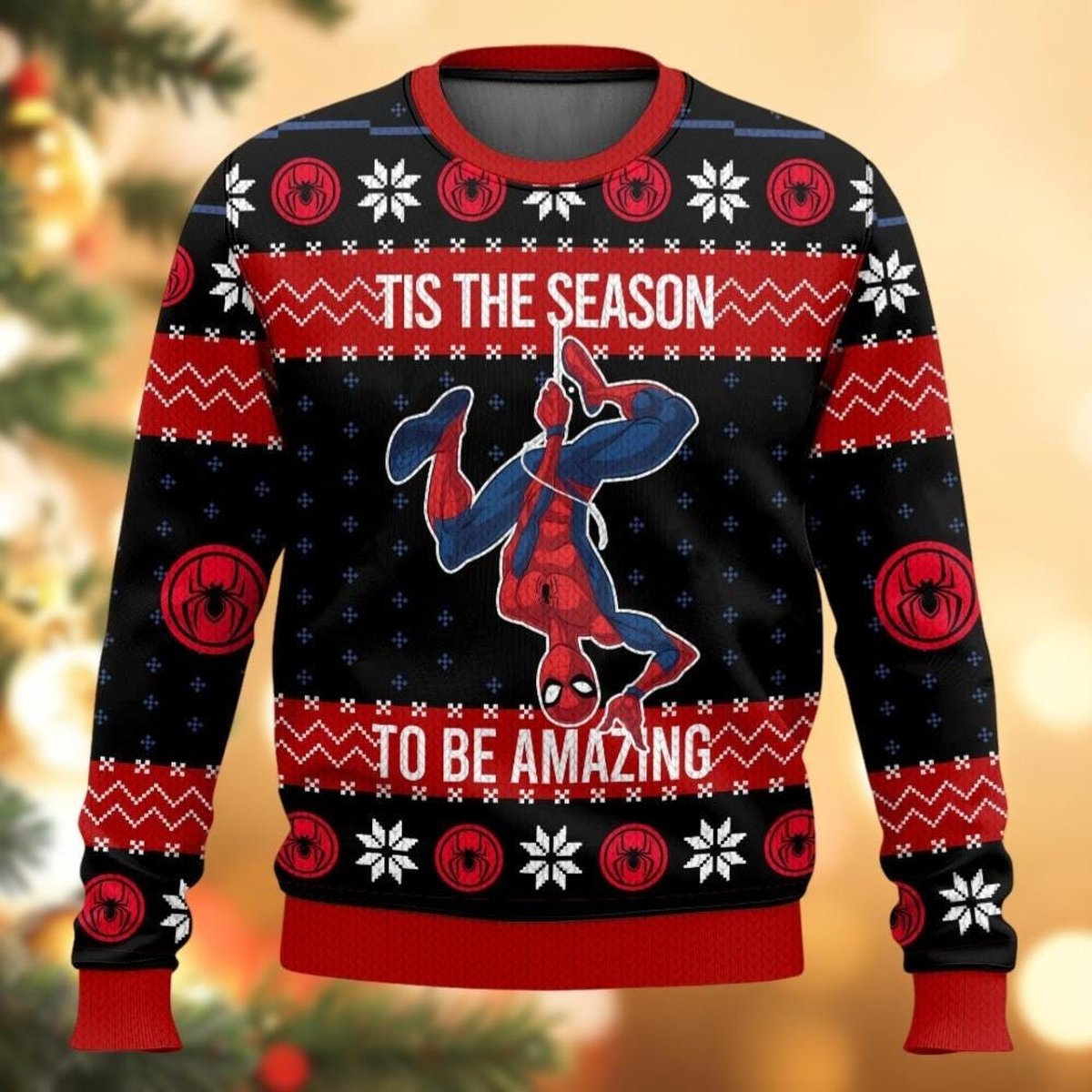 Spider Man Black Red Amazing Ugly Christmas Sweater Funny Hero Holiday Knit