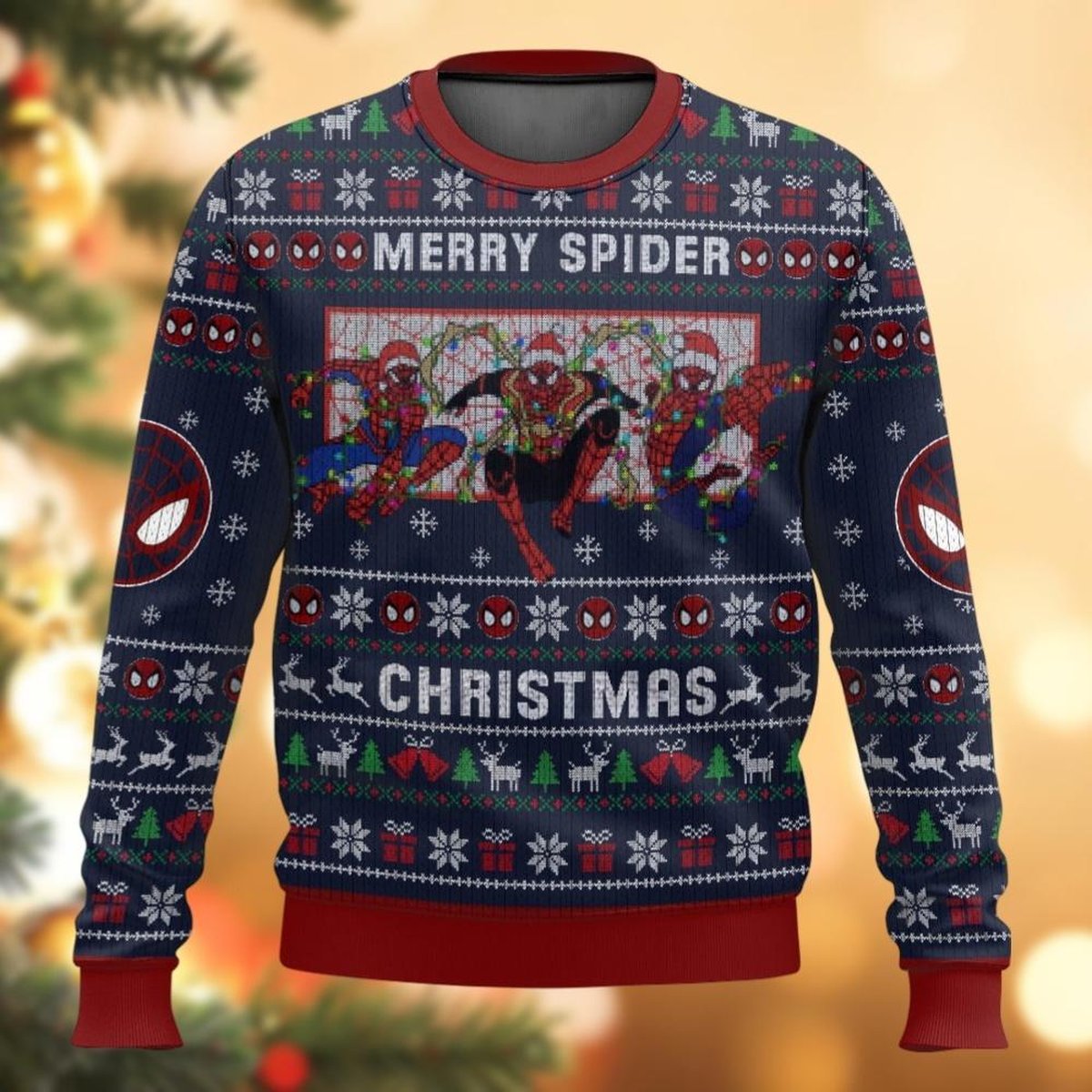 Spider Man Merry Christmas Navy Ugly Christmas Sweater Funny Hero Holiday Knit