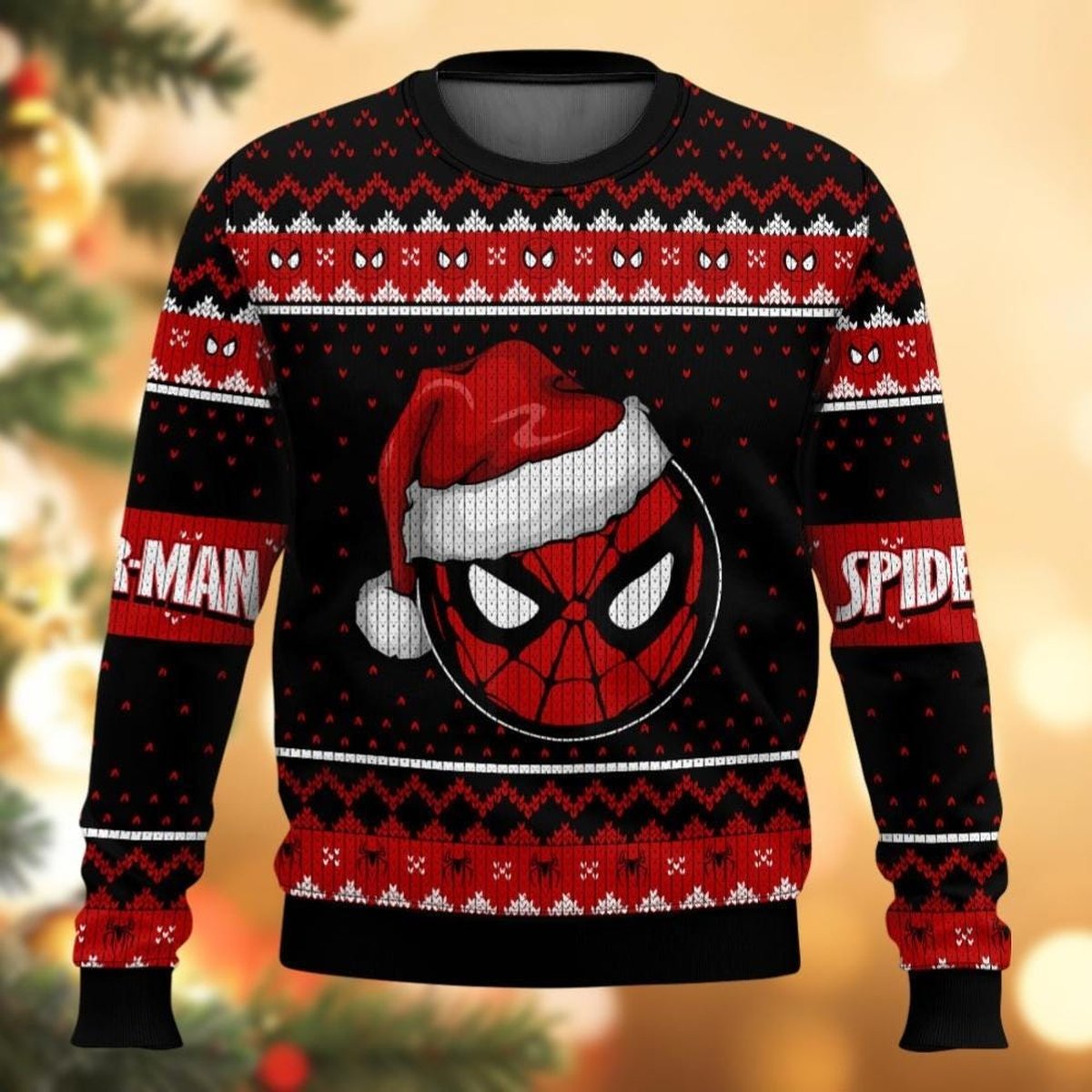 Spider Man Santa Hat Black Red Ugly Christmas Sweater Funny Hero Holiday Knit