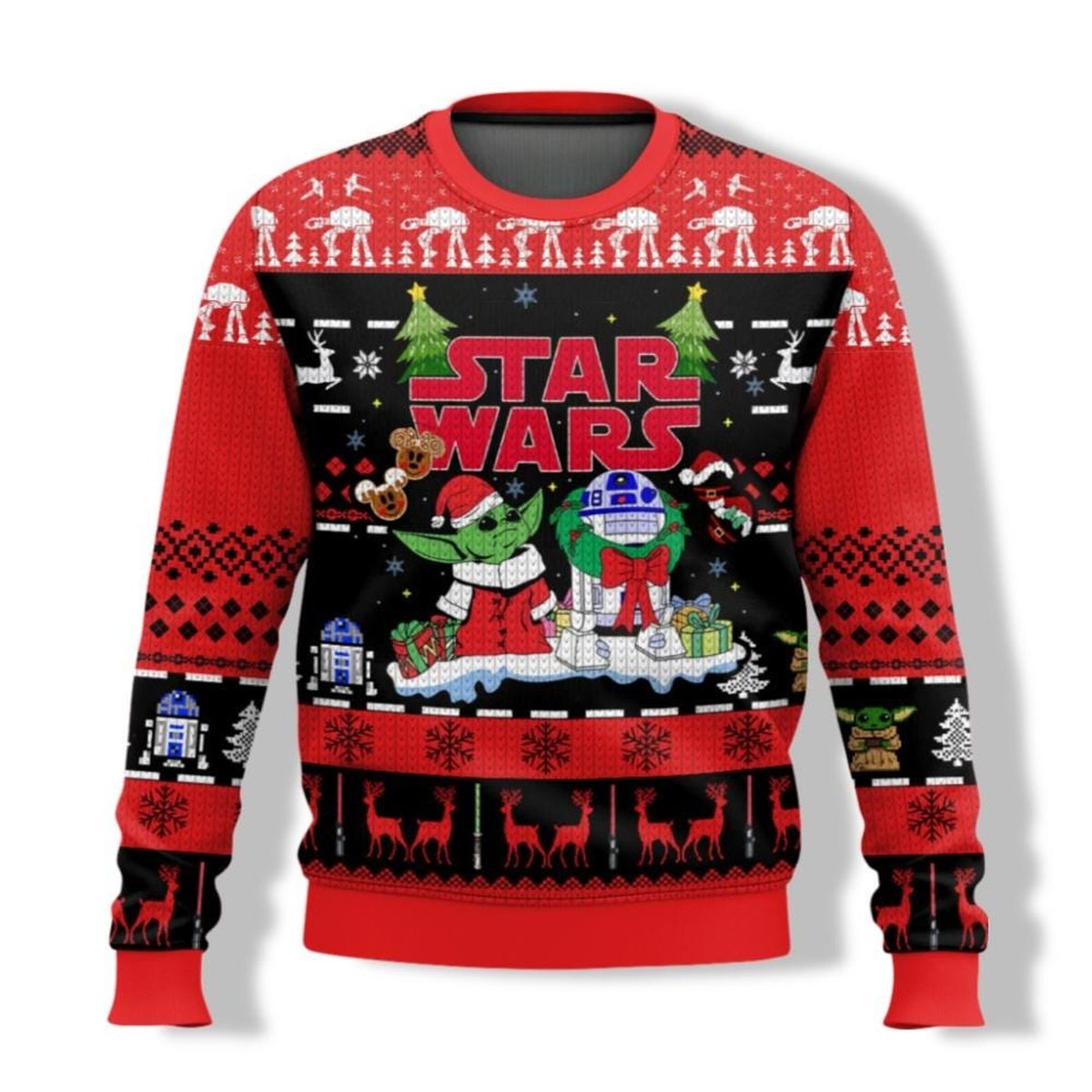 Star Wars Baby Yoda R2D2 Red Christmas Ugly Sweater Cute Holiday Jumper