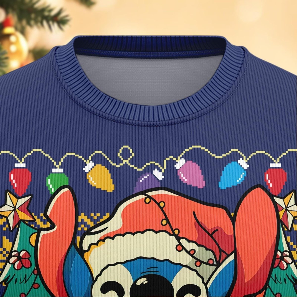 Stitch Blue Christmas Ugly Sweater Cute Cartoon Alien Holiday Gift Knit Jumper