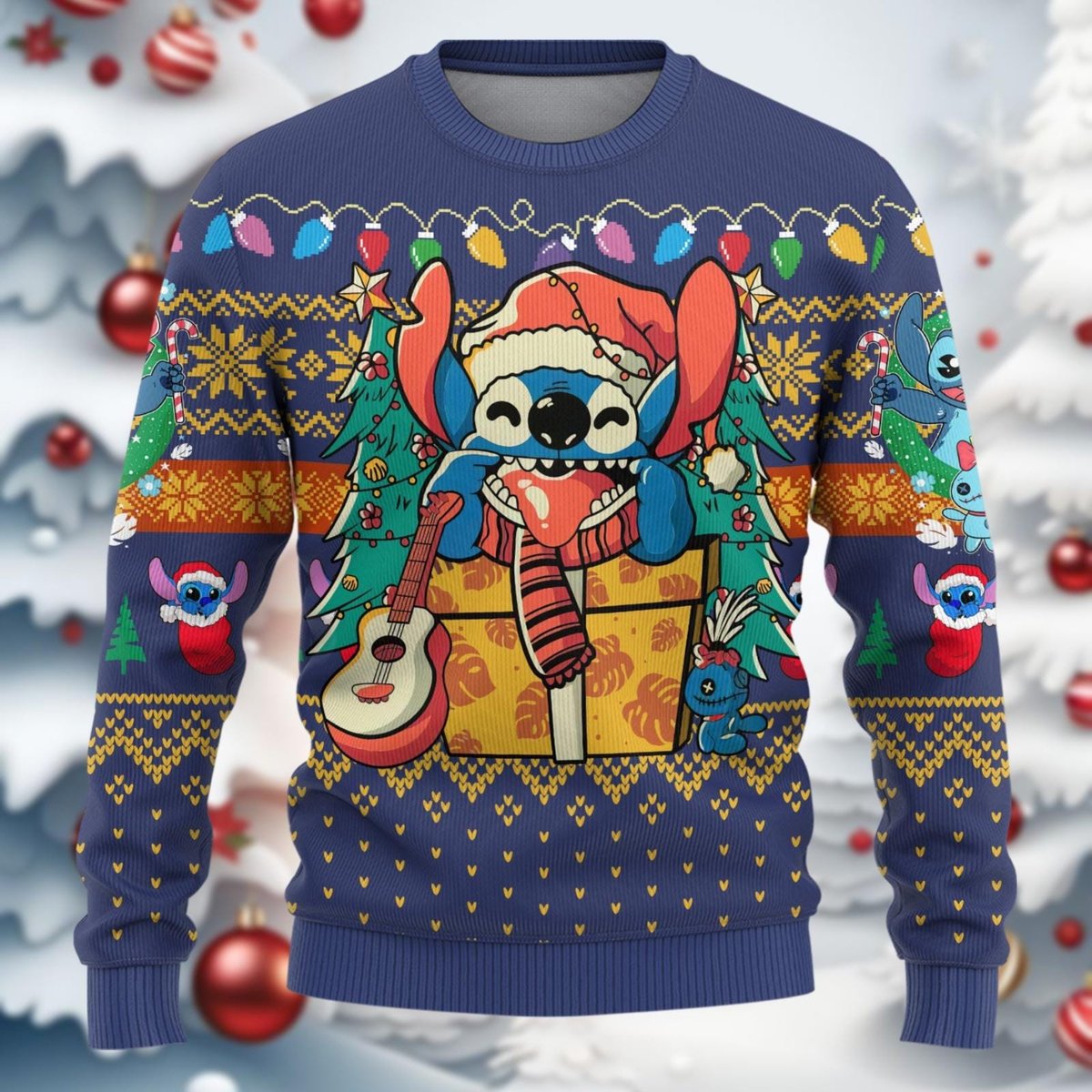 Stitch Blue Christmas Ugly Sweater Cute Cartoon Alien Holiday Gift Knit Jumper