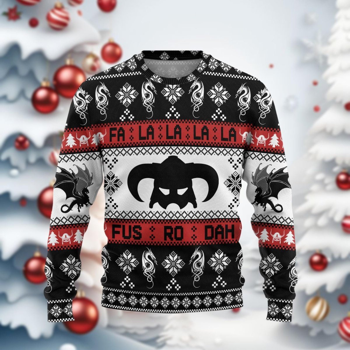 Skyrim Black Christmas Ugly Sweater Dragon Fus Ro Dah Holiday Gamer Knit Jumper