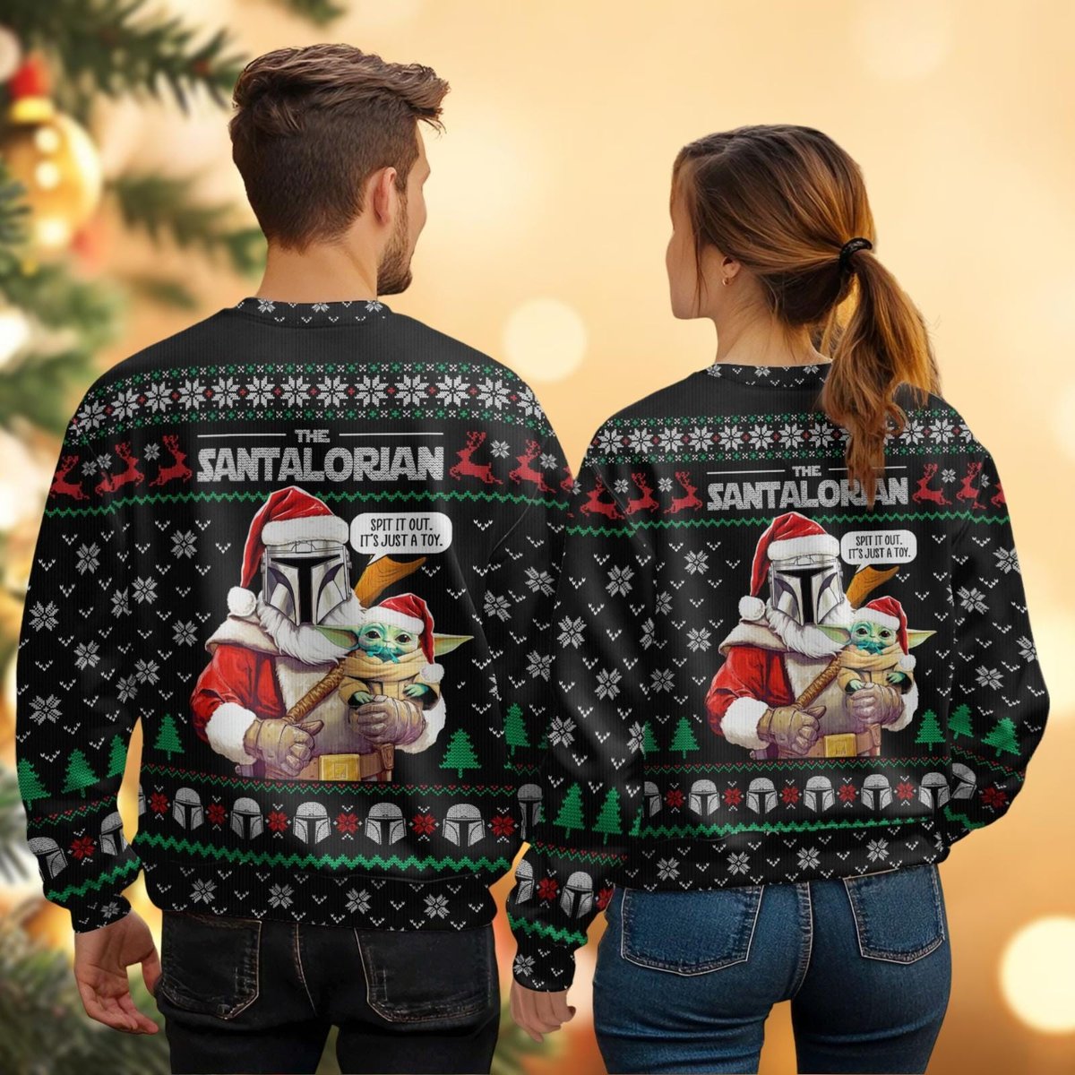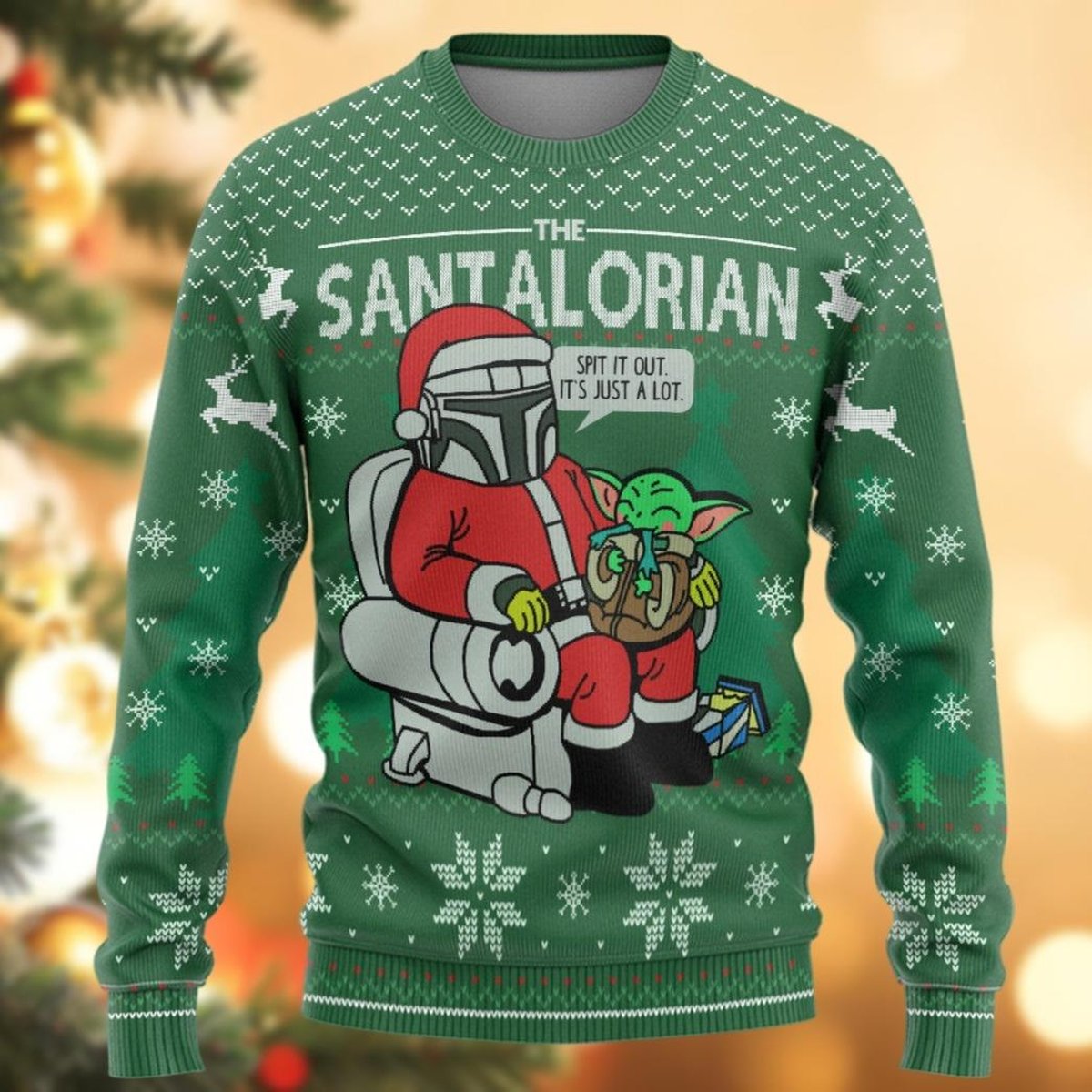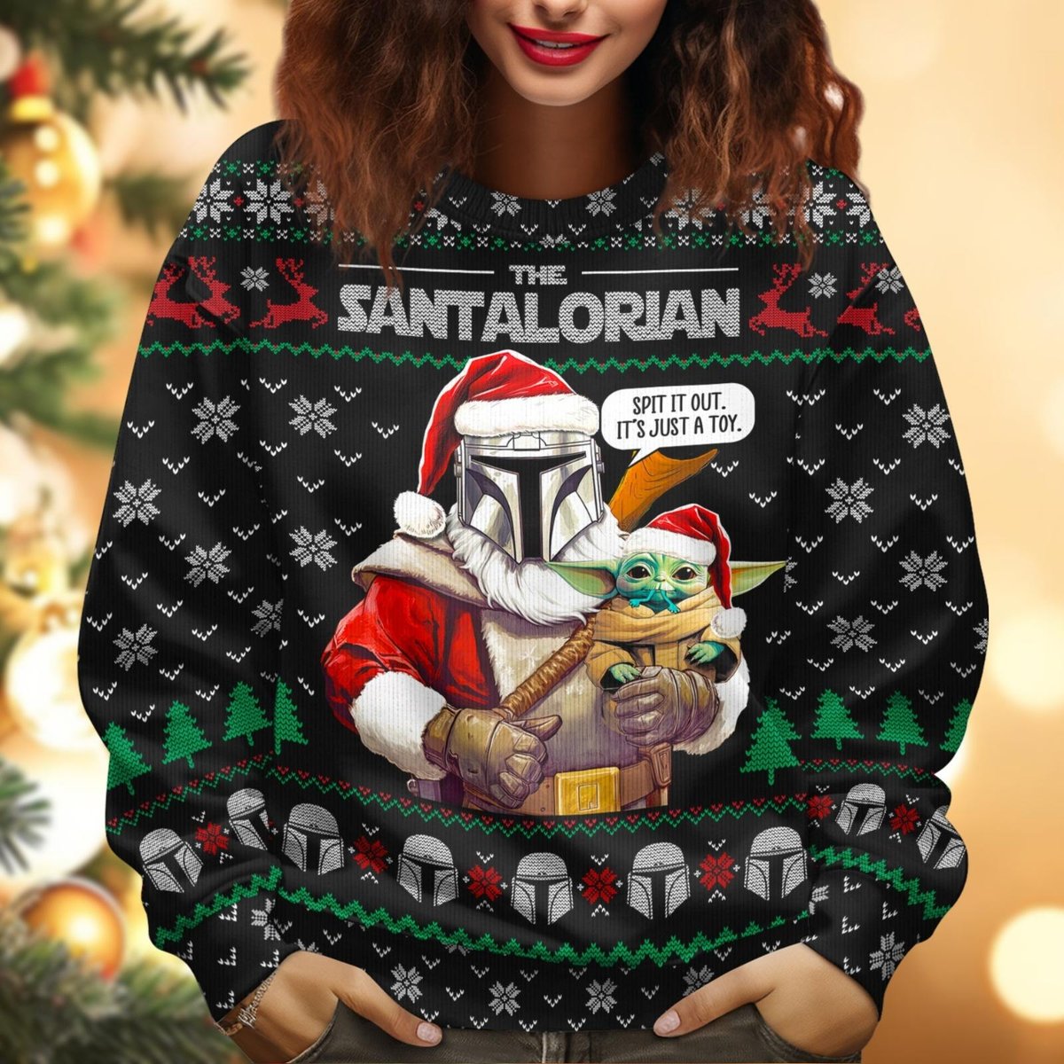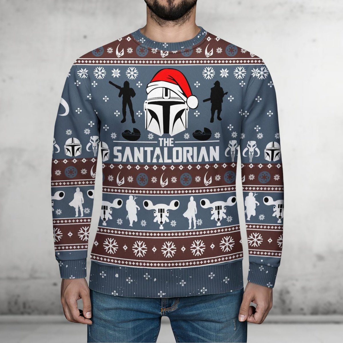 The Santalorian Ugly Christmas Sweater Mandalorian Star Wars Baby Yoda Holiday Pullover Gift