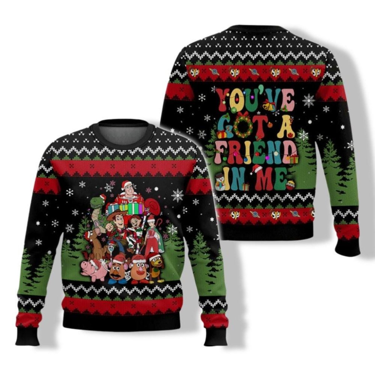 Toy Story You’ve Got A Friend In Me Disney Ugly Christmas Sweater Black Red Jumper