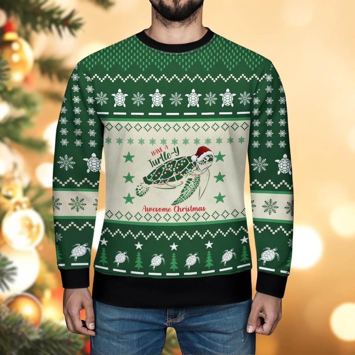 Turtle Merry Christmas Ugly Sweater Green Holiday Pullover Cute Winter Knit