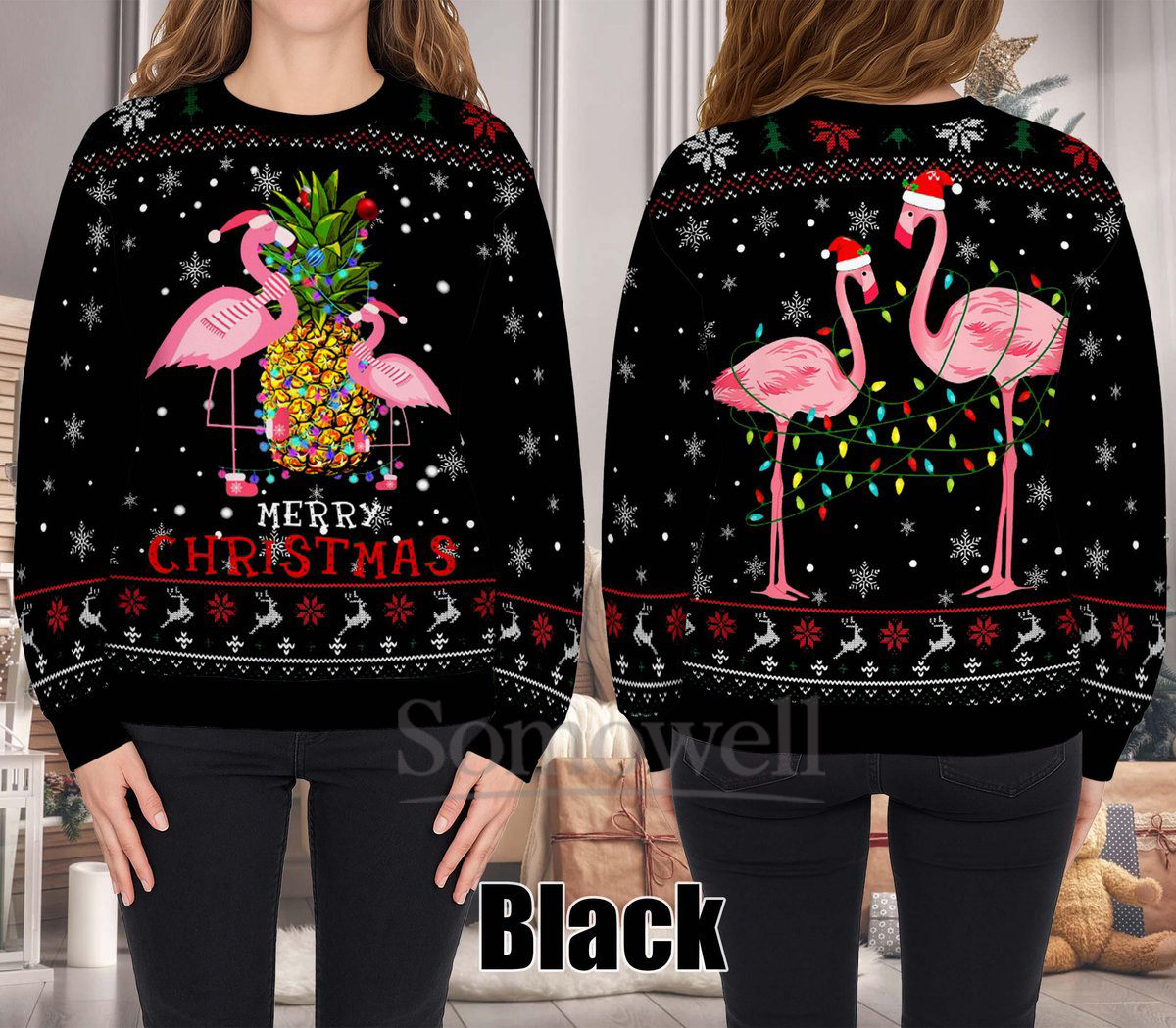 Tropical Flamingo Pineapple Ugly Christmas Sweater Funny Merry Christmas Knit Jumper
