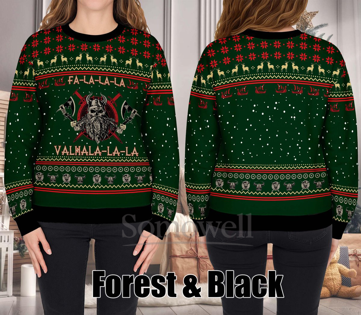 Valhalla La La Viking Ugly Christmas Sweater Funny Warrior Dark Heather Holiday Knit Jumper