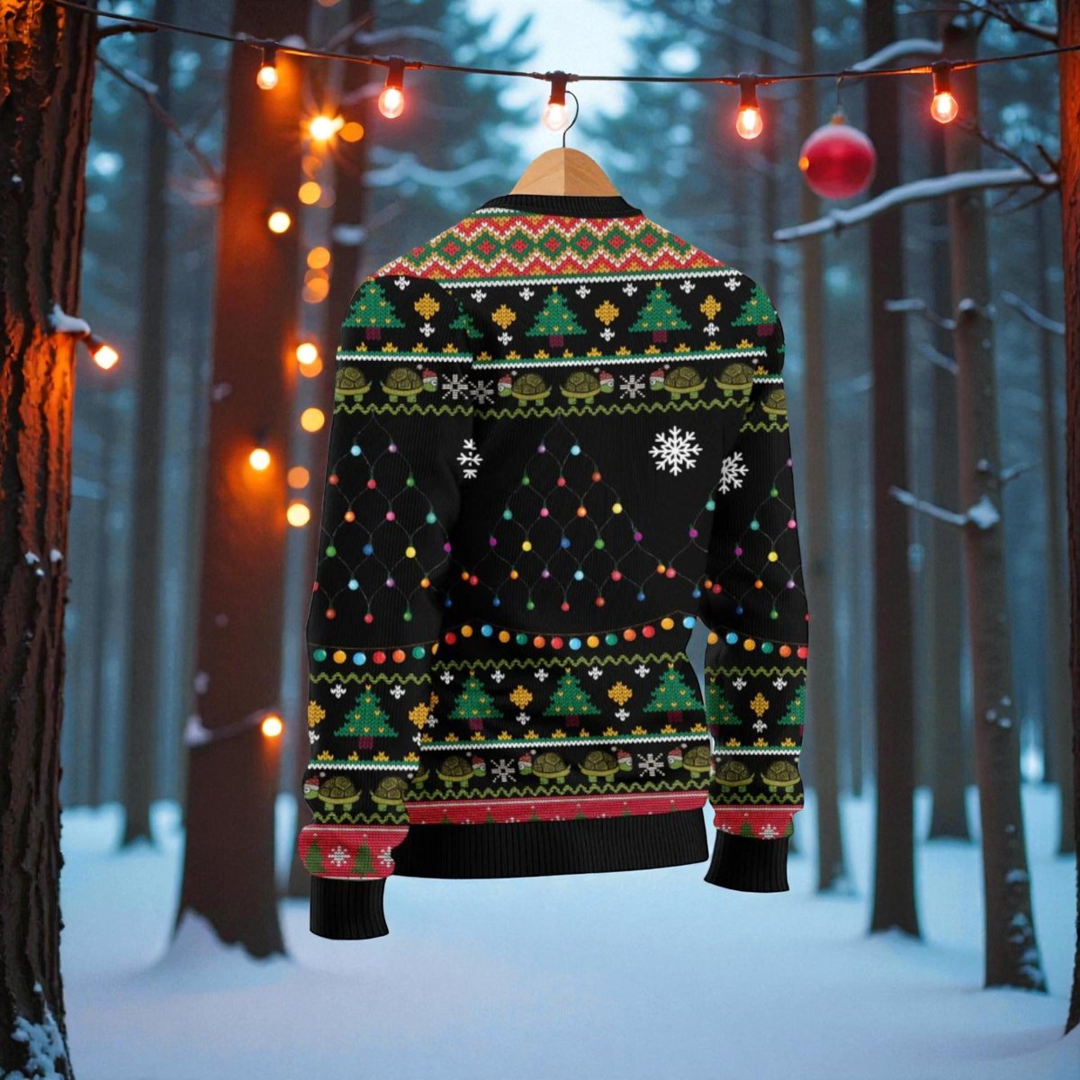 Turtle Through The Snow Ugly Christmas Sweater Funny Turtle Pattern Holiday Knit Jumper