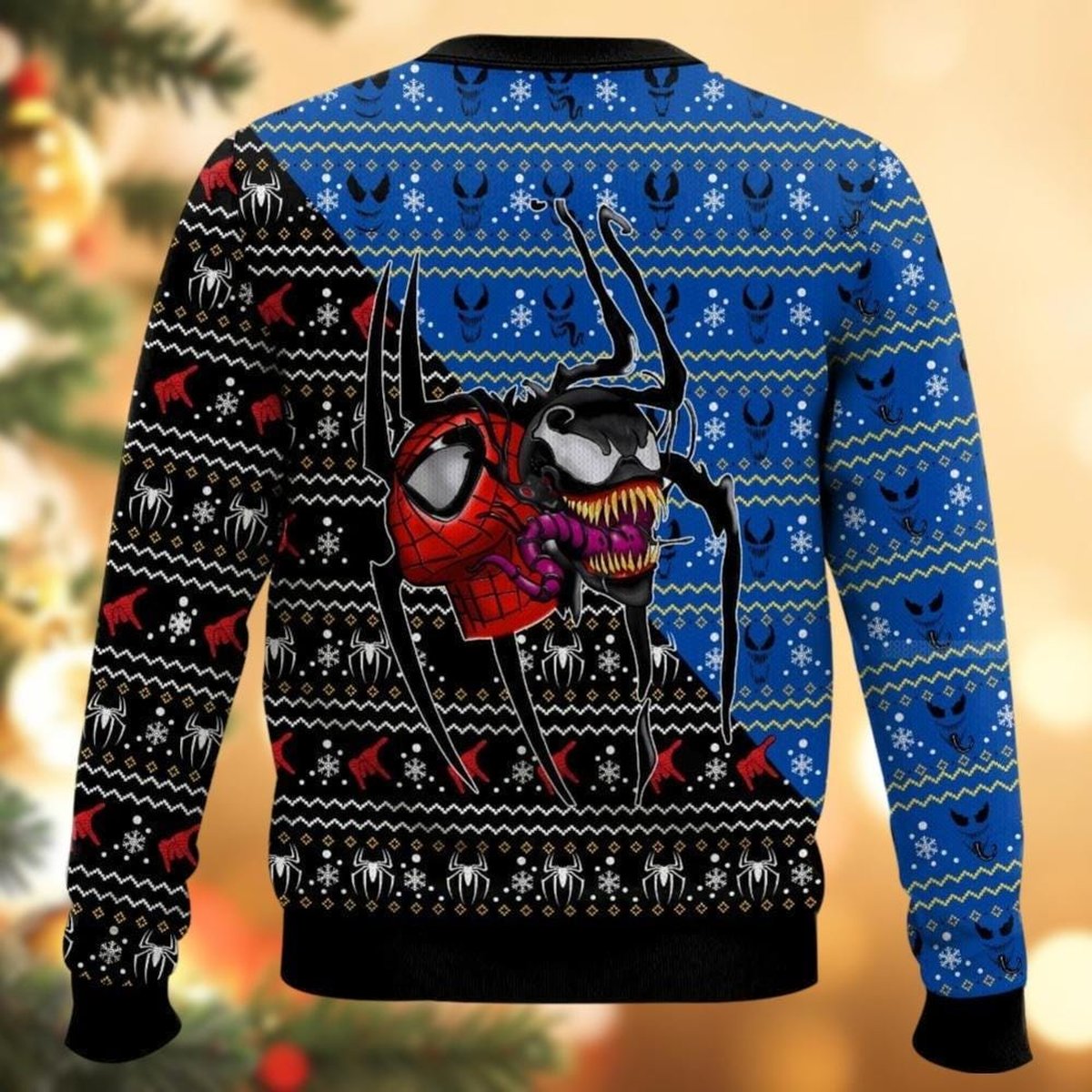 Venom And Spiderman Blue Black Ugly Christmas Sweater Funny Hero Knit Pullover Gift