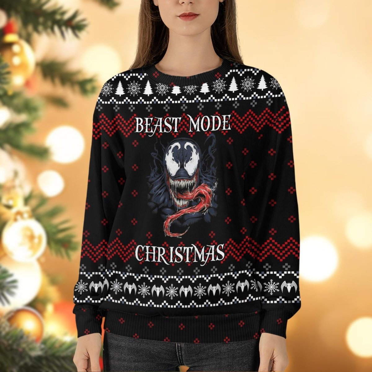 Venom Beast Mode Christmas Black Ugly Christmas Sweater Funny Holiday Knit Gift