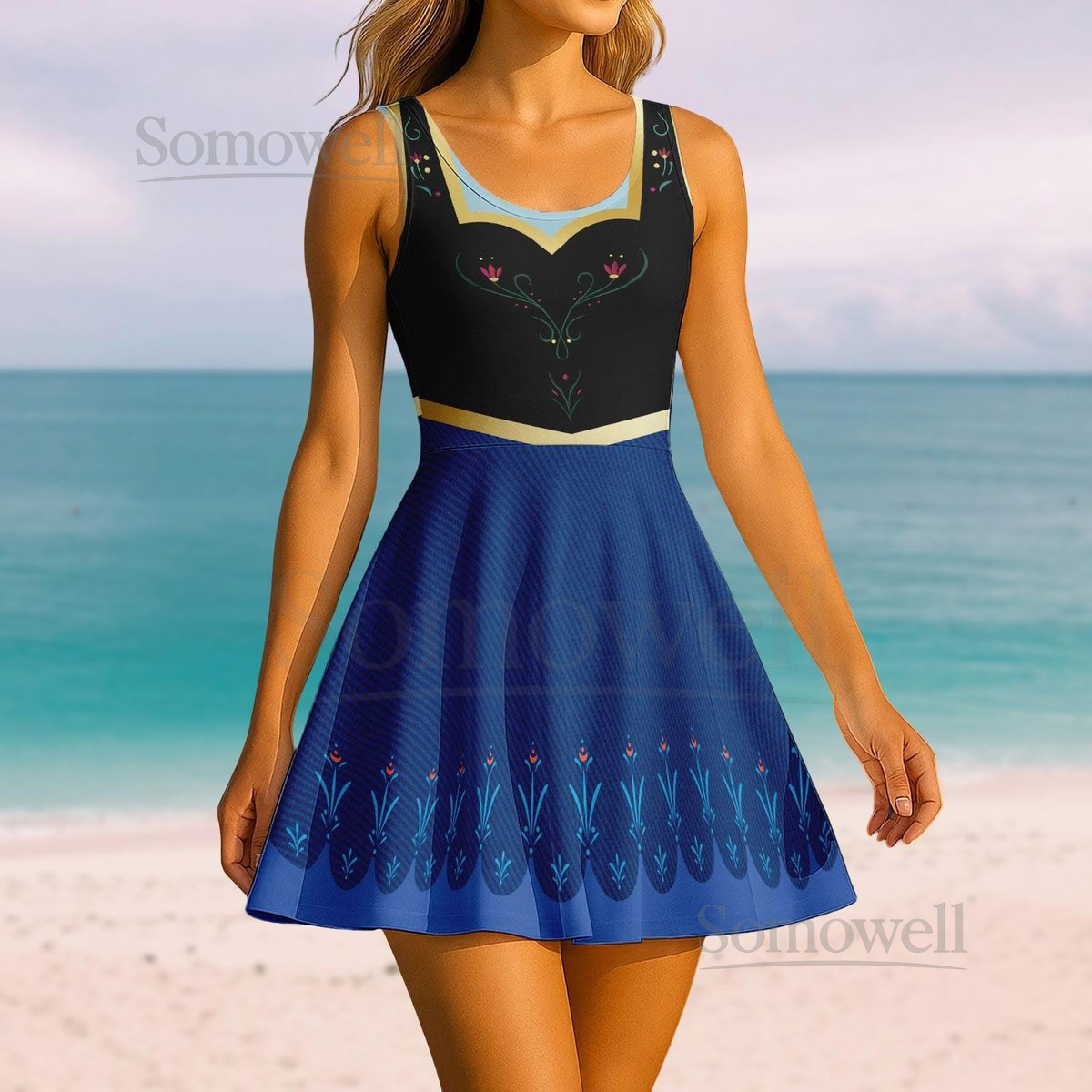 Anna Frozen Princess Skater Dress Disney Princess Women Dress Disney Frozen Cosplay Costume Dress Halloween Cosplay Running Dress_4