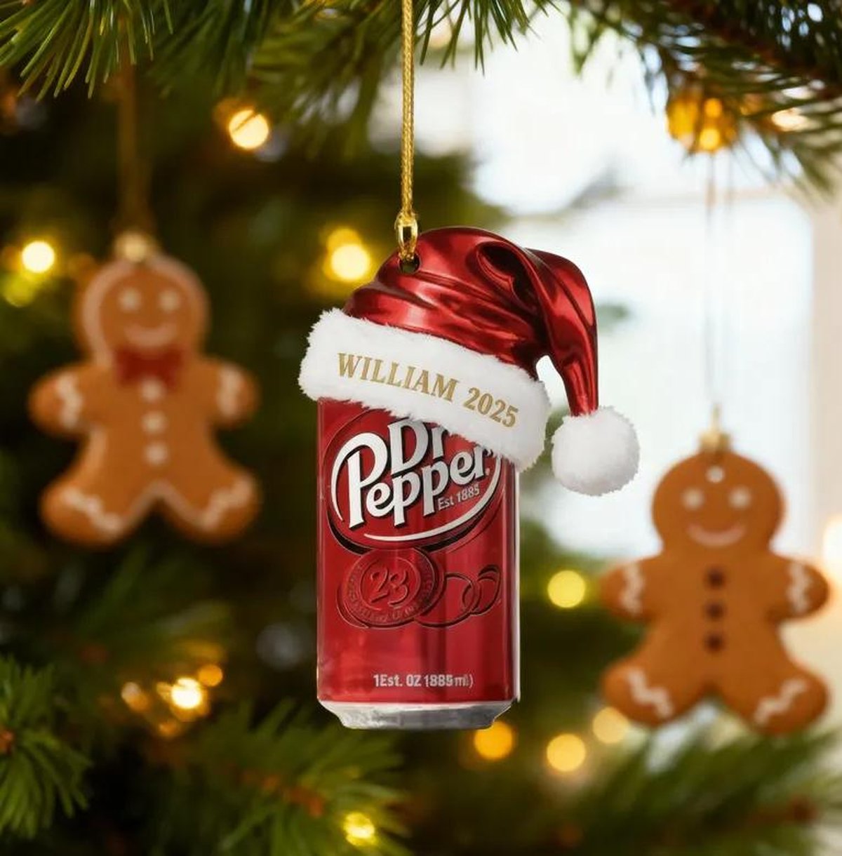 Personalized Dr Pepper Christmas Ornament 2025 Custom Name Flat Acrylic Soda Can Ornament Santa Hat Tree Decoration Dr Pepper Lover Gift