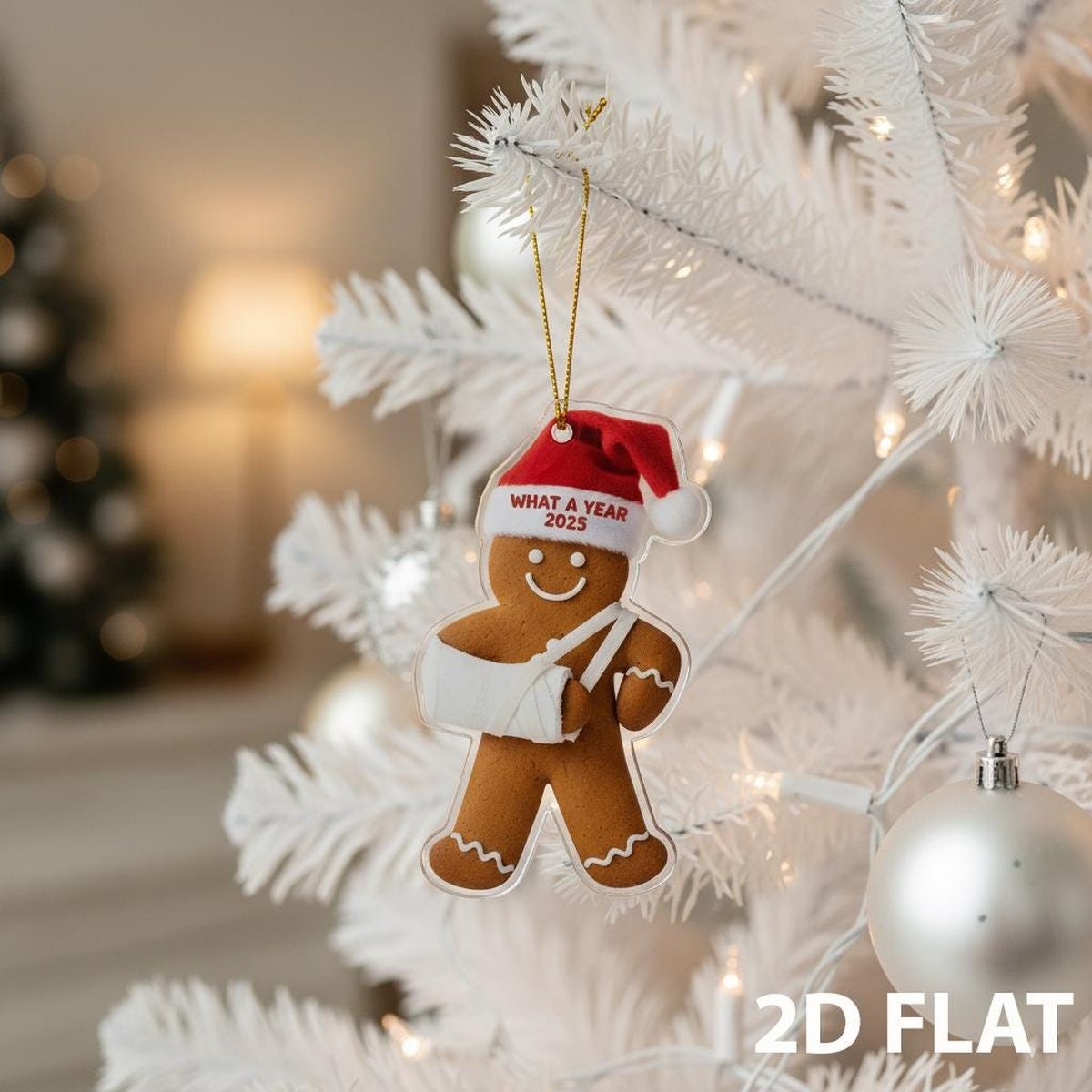 Injury Christmas 2D FLAT Ornament Funny Gingerbread Xmas Ornament Broken Arm Holiday Decor What a Year 2025 Ornament Gift