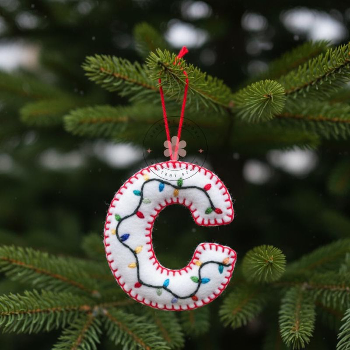 Hand Embroidered Initial Christmas Ornament Personalized Canvas Keepsake