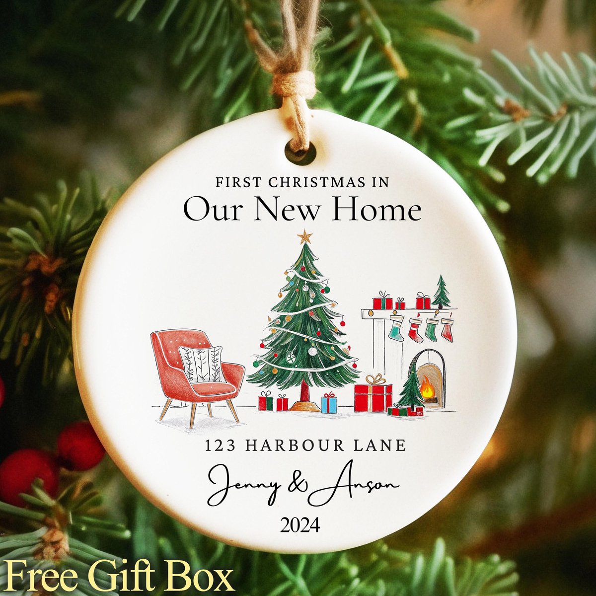 First Christmas in Our New Home Christmas Ornaments House Address Ornament 2024 New Home Ornament Our First Home Keepsake New House Gift