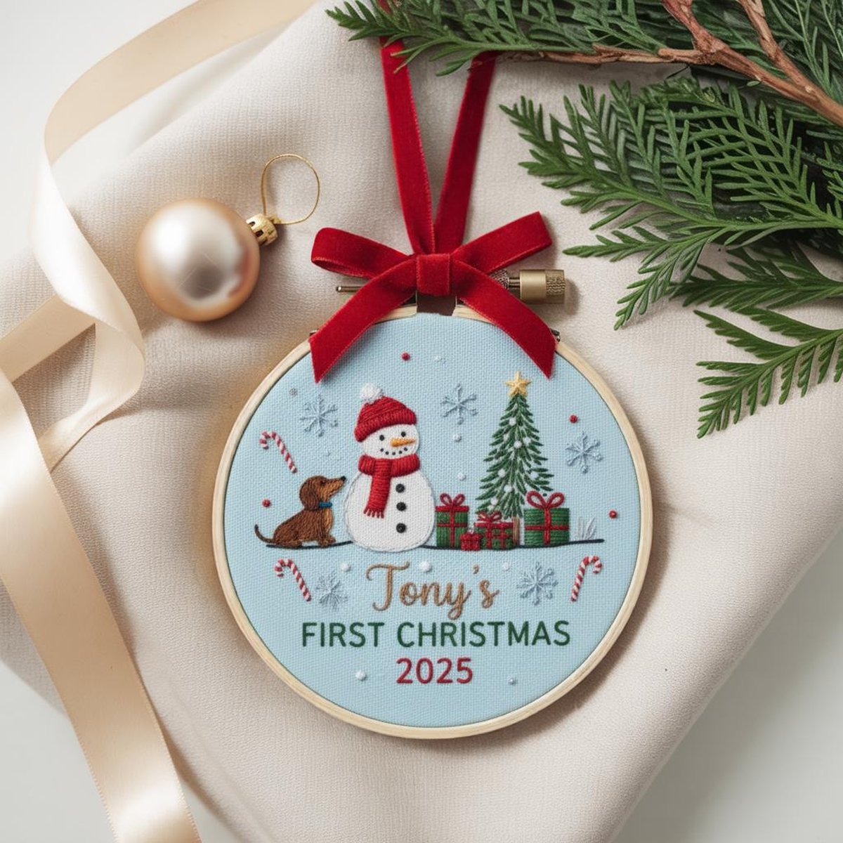 Embroidered Snowman Baby39s First Christmas Ornament Handmade Holiday Decor Personalized Unique Gift for New Baby Custom Christmas Gift
