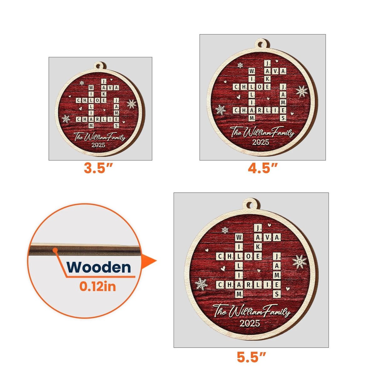 Family Name Scrabble Christmas Personalized Wooden Ornament Family Puzzle Name Ornament Custom Family Crossword Christmas Ornament