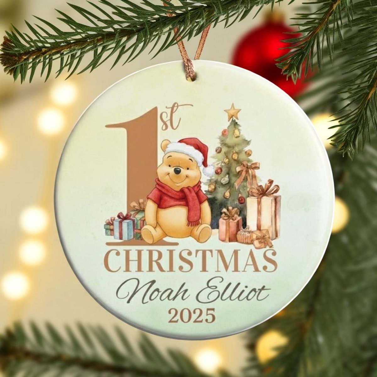 Disney Pooh Baby First Christmas Ceramic Ornament Personalized Baby39s First Christmas Ornament Disney Pooh Bear Ornament Disney Ornament
