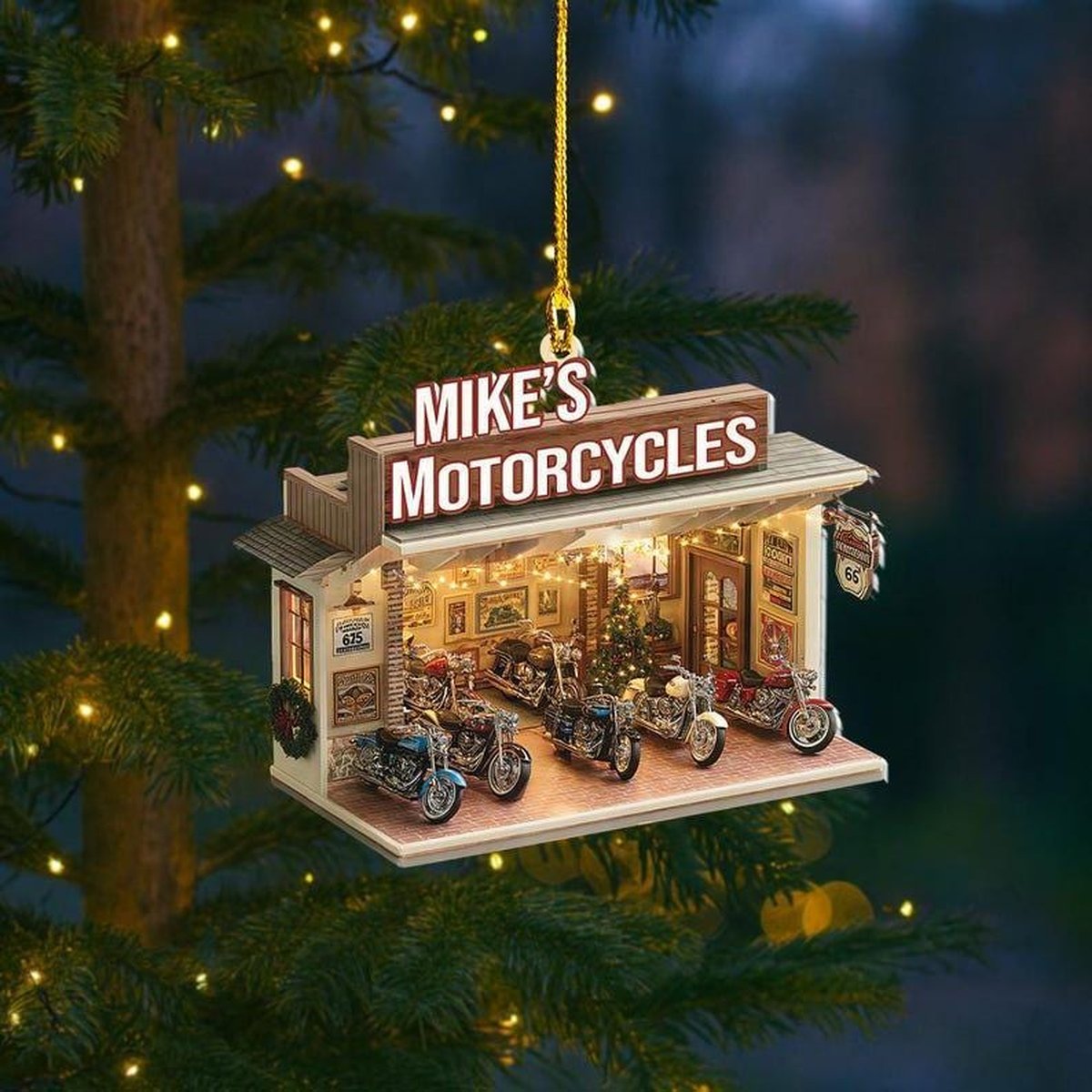 Personalized Motorcycle Shop Ornament Custom Name Vintage Biker Garage Christmas Decoration with Motorcycles