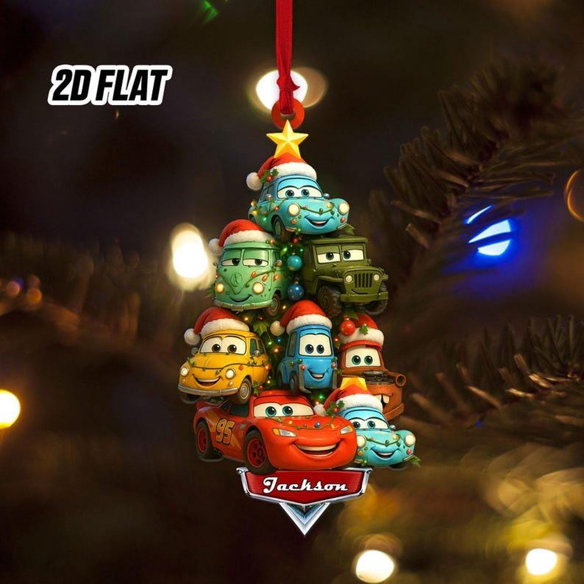 Personalized Name Car Characters 2D Flat Christmas Ornament Lightning McQueen Ornament Cars Ornament Christmas Tree Decor Gift