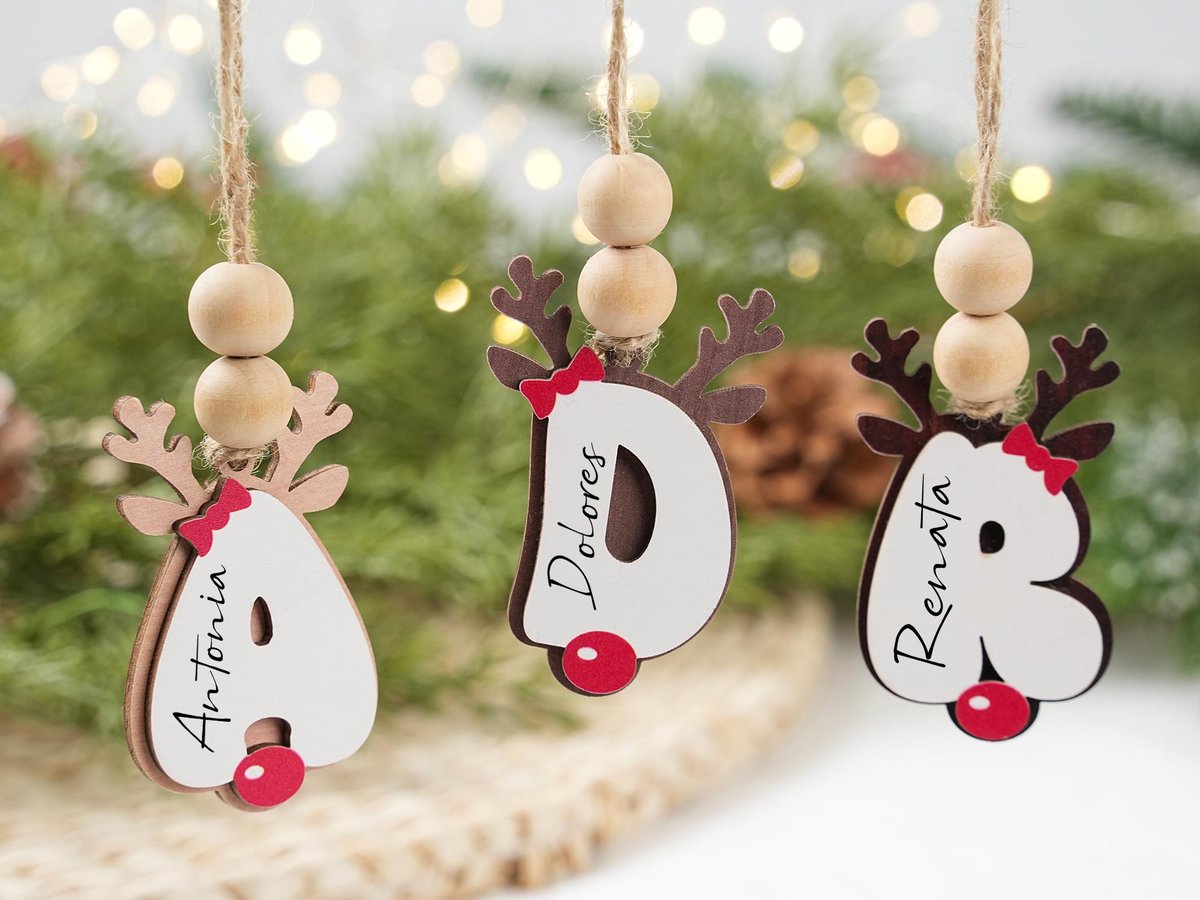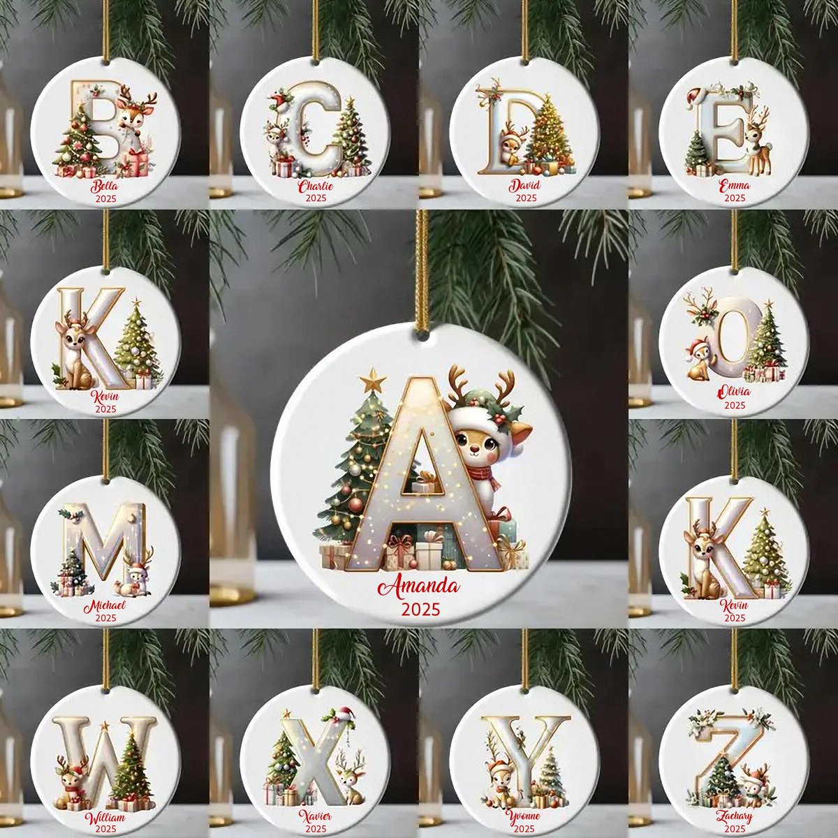 Personalized Reindeer Ornament Letter Name Ornament Custom Initial Ornament Monogram Ornament 2025 Family Ornament Kid Ornament
