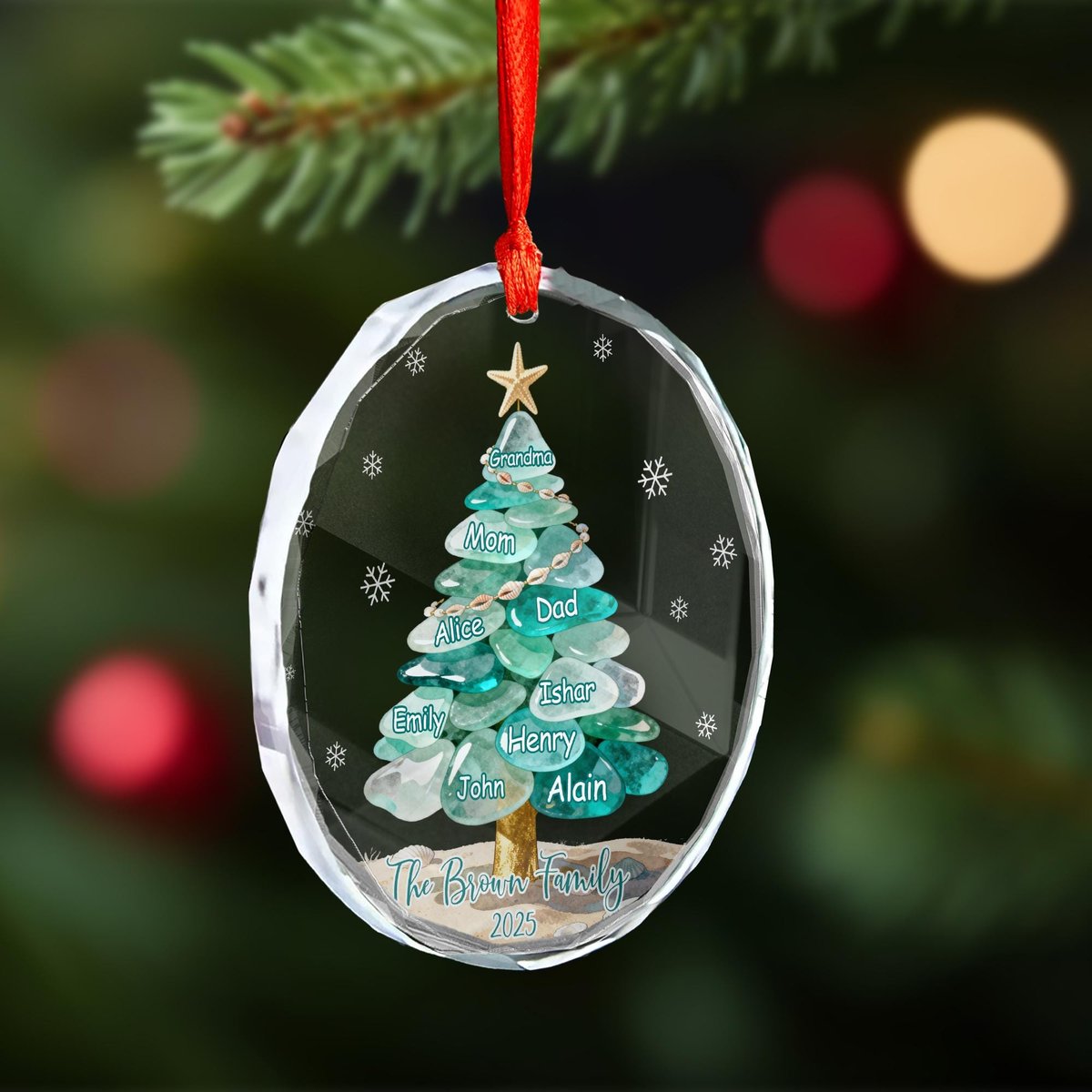 Personalized Sea Glass Family Tree Ornament Christmas Family Ornament Sea Glass Holiday Keepsake Gift 2025 Xmas Gift for Beach Lovers