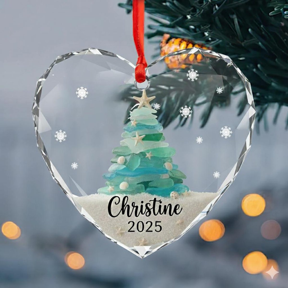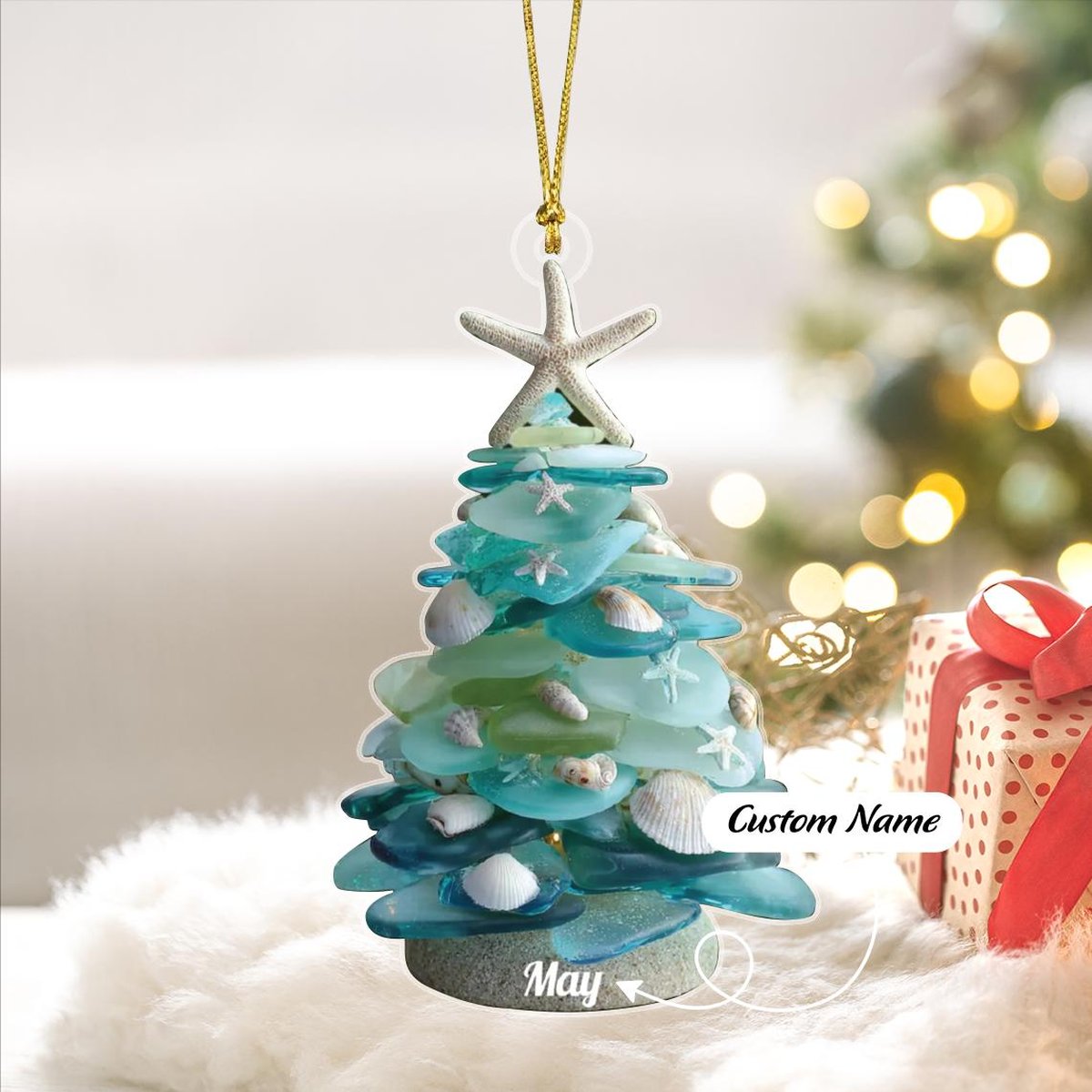 Personalized Sea Glass Christmas Tree Ornament Custom Coastal Xmas Decor Ocean Inspired Gift for Beach Lovers
