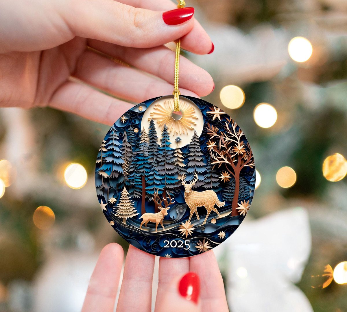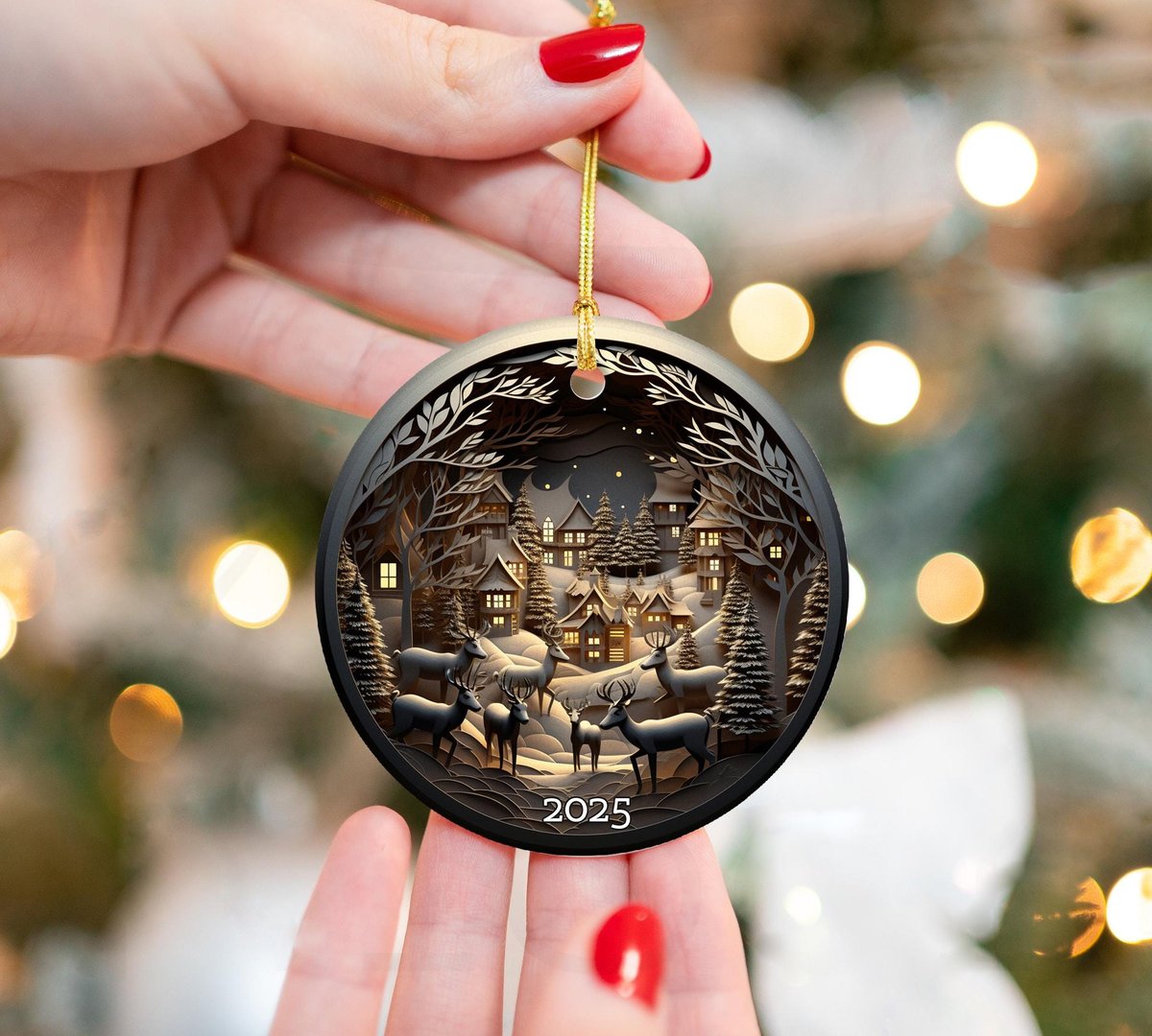 Christmas Night 3D Effect 2025 Christmas Ornament Holiday Gift Idea Heirloom Keepsake Round Ceramic Bauble Present Unique Ornament
