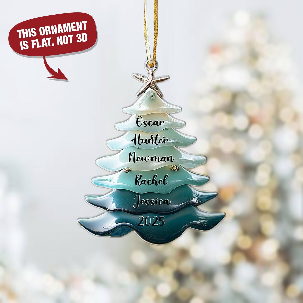 Coastal Family Custom Name Acrylic Ornament 2D Flat Custom Family Tree Sea Glass Style Christmas Gift Personalized Xmas Ornament 2025