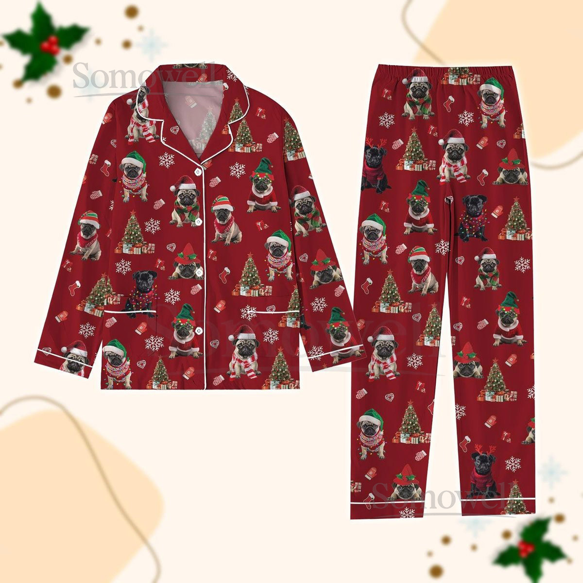 Pug Santa Christmas Pajamas Set Funny Pug Dog Pajama Pet Lover Sleepwear Dog Lover Matching Family Pajamas Dog Mom Shirt Xmas Gift_52