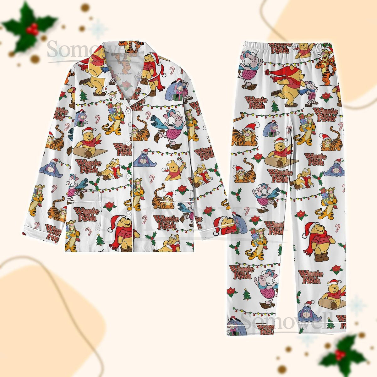 Pooh Bear Christmas Pajamas Set Winnie The Pooh Holiday Pajamas Disney Bear Women Pajamas Santa Pooh Xmas Lounge Xmas Cartoon Gift_50