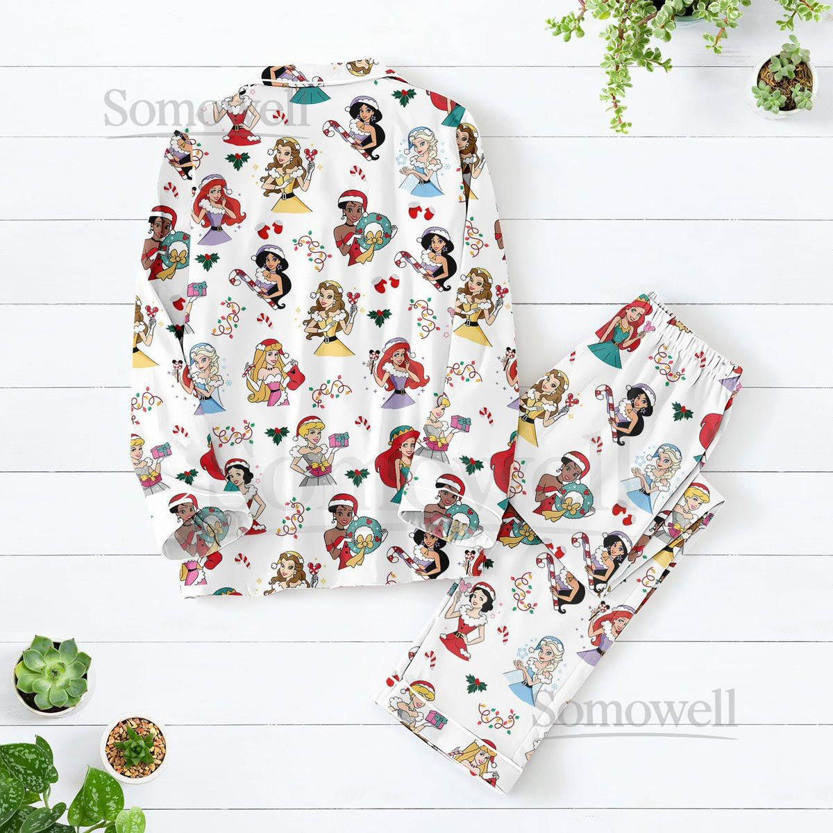 Disney Princess Christmas Pajamas Set Cinderella Belle Tiana Xmas Pajamas Holiday Pajamas Magic Kingdom Matching Family Pajamas_32