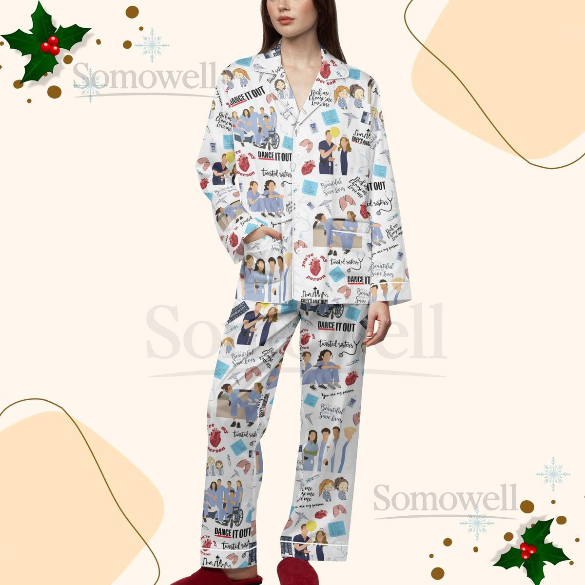 Grey’s Anatomy Pajamas Set Meredith Grey Pj Set Women’s Nursing Xmas Pajamas Christmas Pajamas Pajamas For Party Greys Anatomy Pjs_37