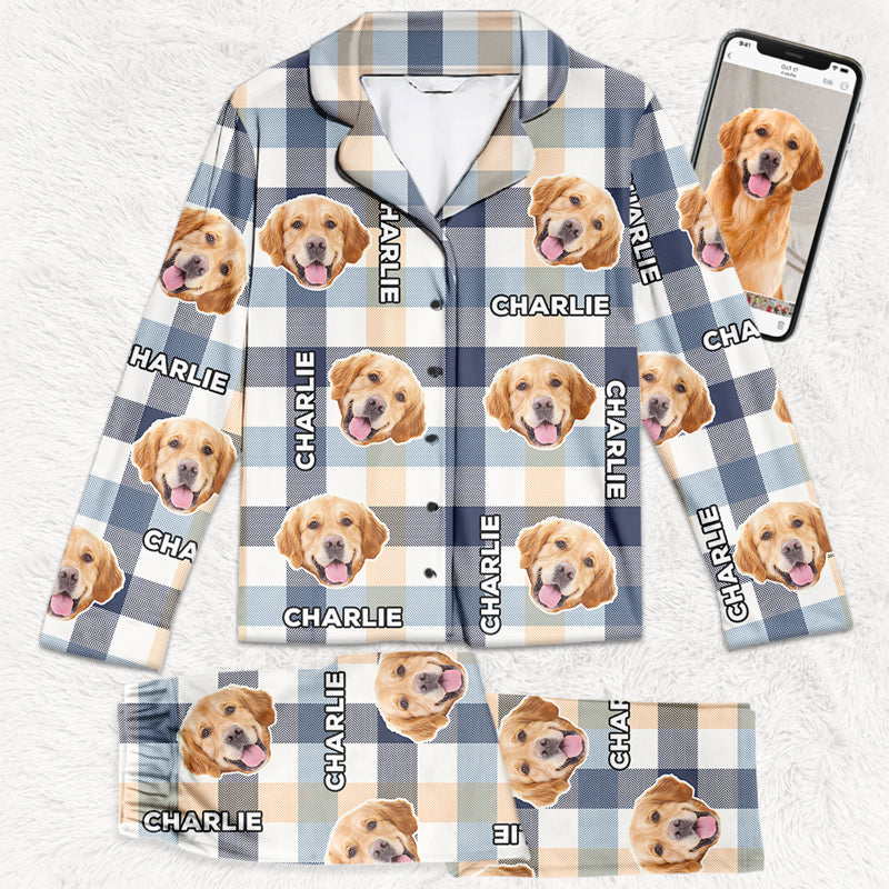 Custom Photo Sending You Pugs And Kisses Dog & Cat Personalized Custom Face Photo Pajamas Christmas Gift For Pet Owners Pet Lovers