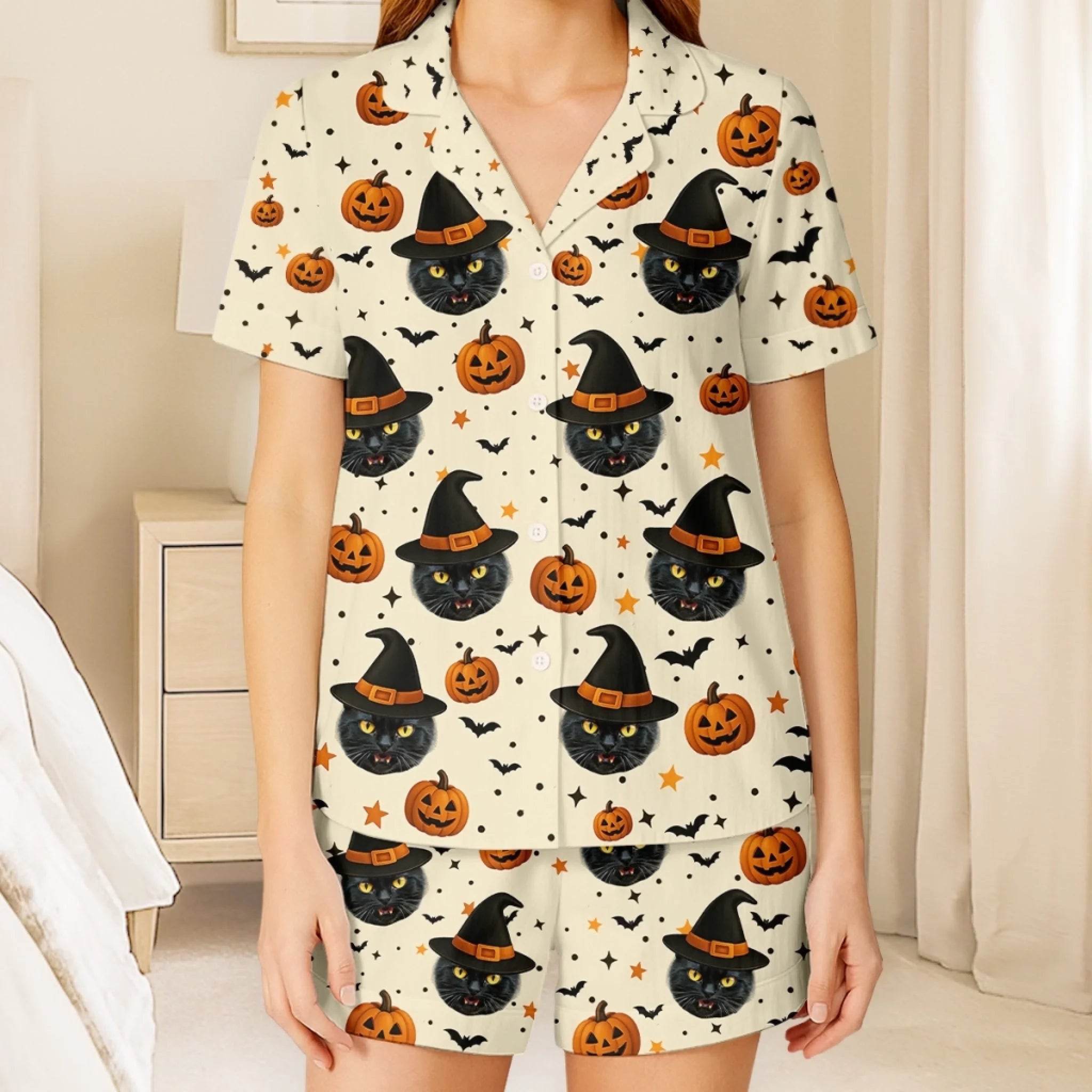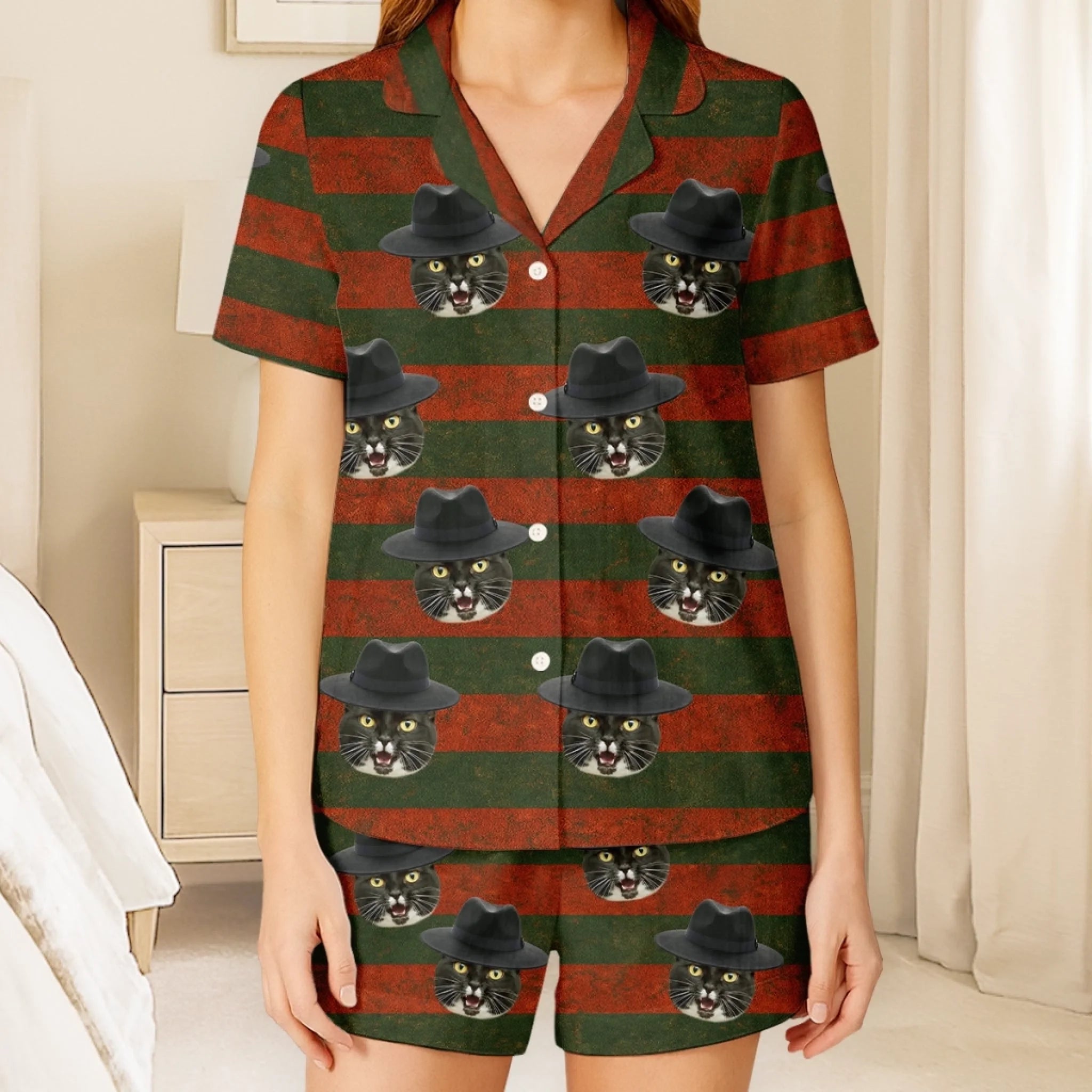 Custom Photo Short Pajama Set Birthday Gifts For Dog Cat Lovers Dog Dad And Mom Cat Owners Too Cute To Spook