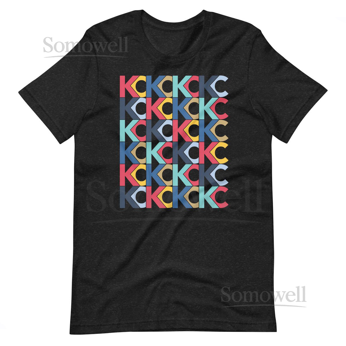 Kansas City Colors Sports KC Crewneck Tee Bella Canvas KC Pattern Kansas City Team Colors TShirt Unisex Black White Gray_371