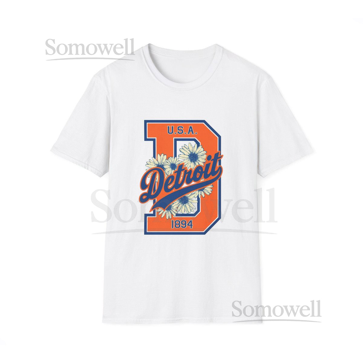Detroit Floral D Unisex Softstyle T-Shirt Detroit Baseball Tee Vintage Detroit Shirt Flower City Shirt Detroit Gift Detroit Sports Tee_151