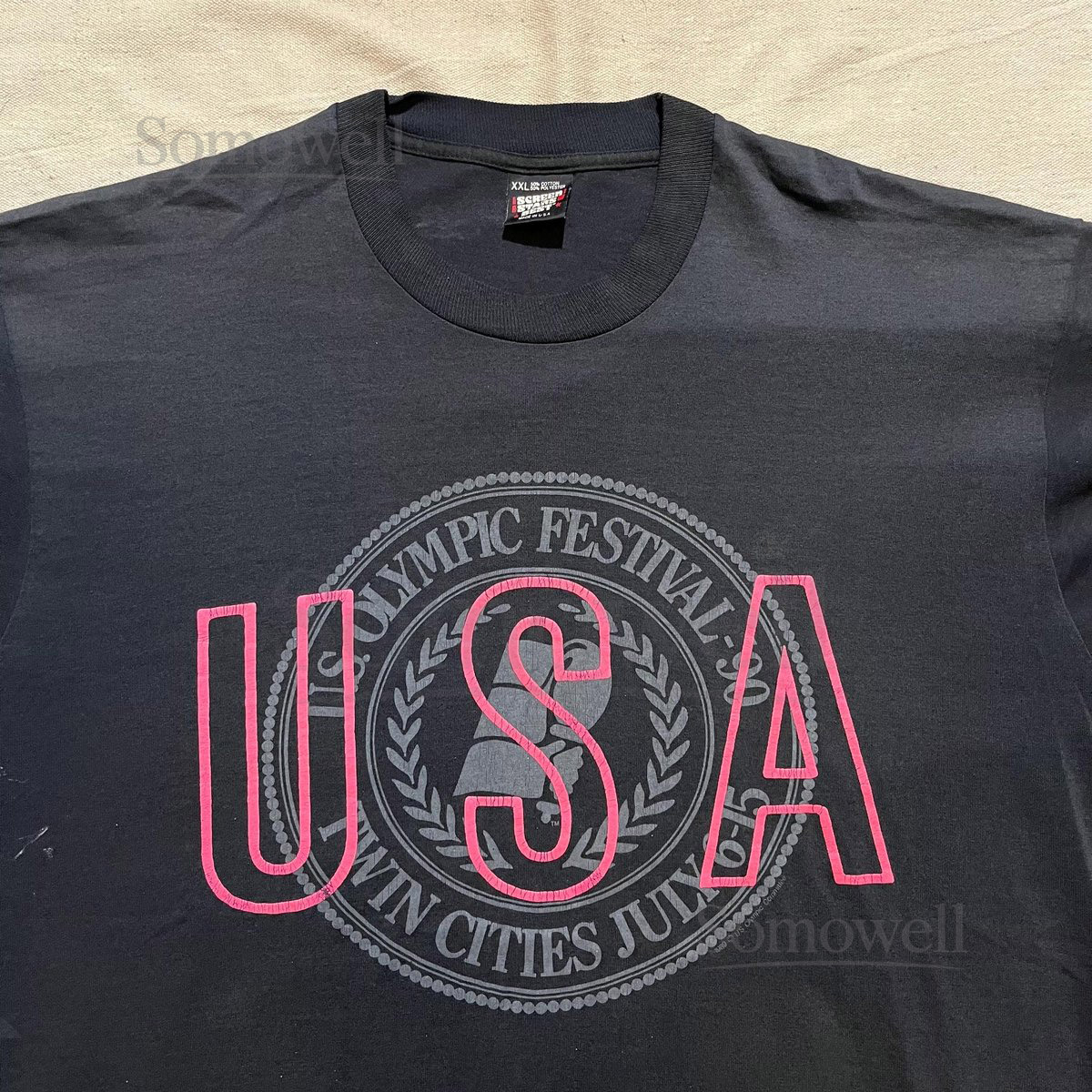 Vintage 90s US Olympics Festival Minnesota Twin Cities Tourist Souvenir Paint Stained Graphic T-Shirt Black XXL 2XL_886