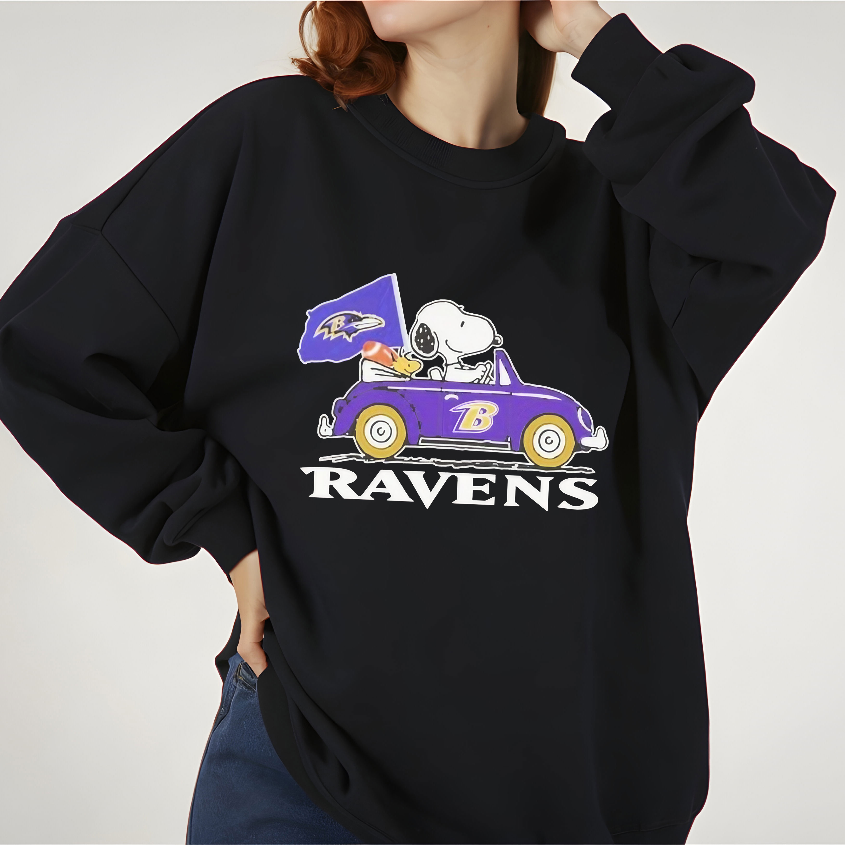 Snoopy and Woodstock Driving Car Baltimore Ravens Football NFL Team Spirit Vintage Bootleg Sports Apparel – T-Shirt, Hoodie & Sweatshirt